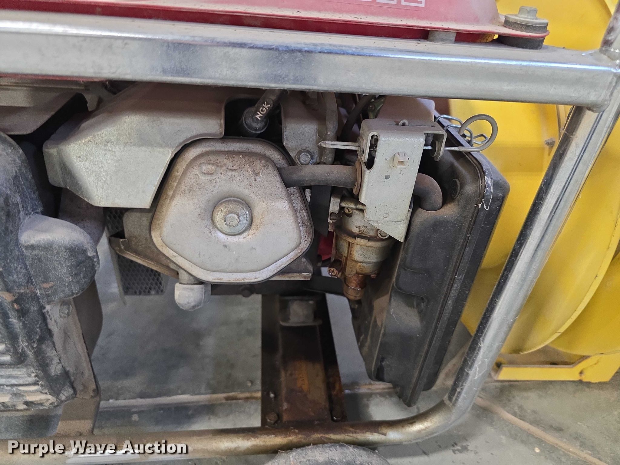 Shop equipment. 1990 Sanborn Silver Bullet V 0210050 air compressor Capacity: 60 gallons, Phase: SIngle, Magnetek motor, Honda EM 5000 SX Generator Volts: 120/240, Honda gas engine, Hose reel, UWS toolbox. Bluestem Electric Cooperative, Inc. Wamego, KS 66547