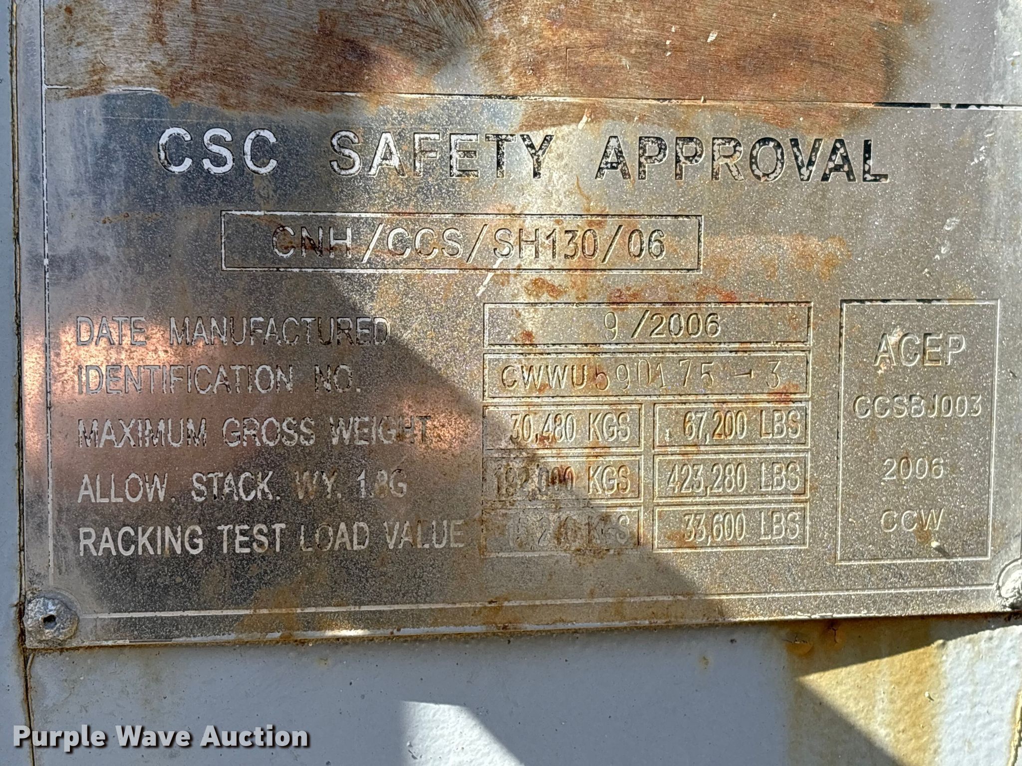 Purple Wave is selling a used Storage or Shipping Container in Louisiana. This item is a 2006 shipping container with the following: Serial: CWWU590175-3