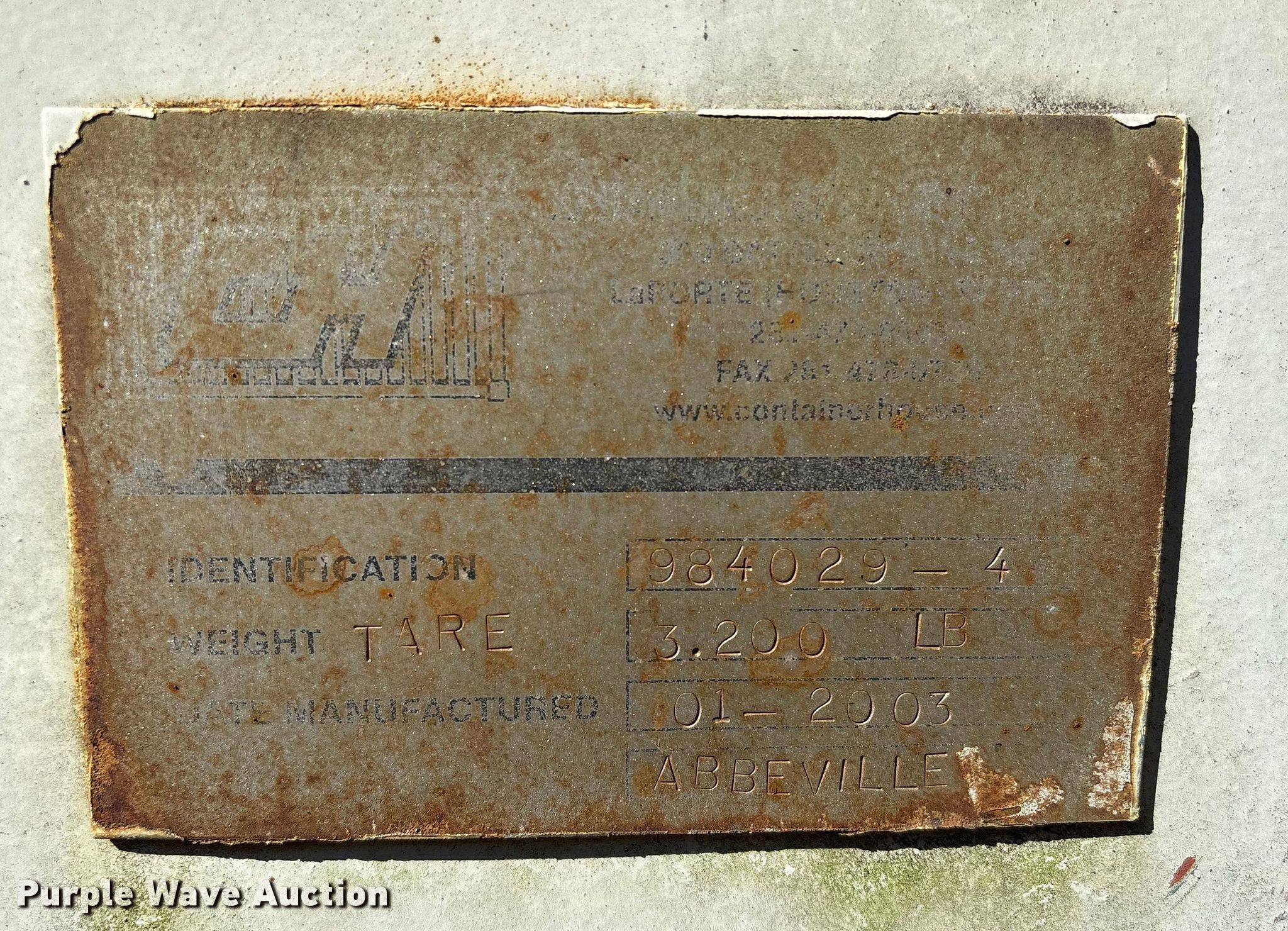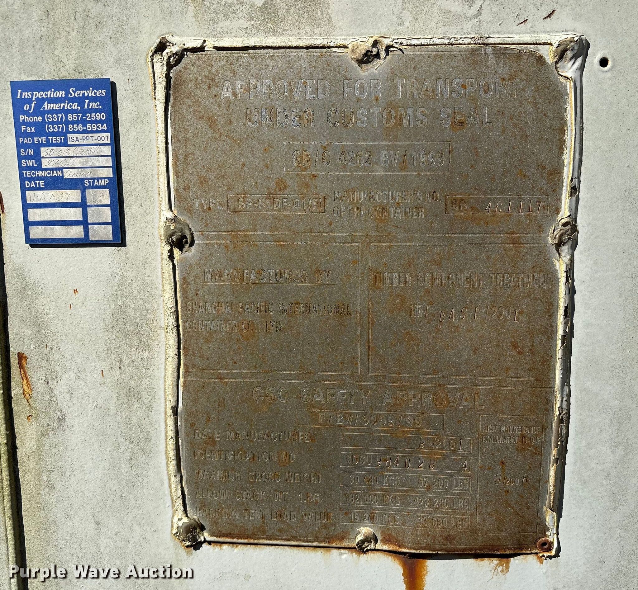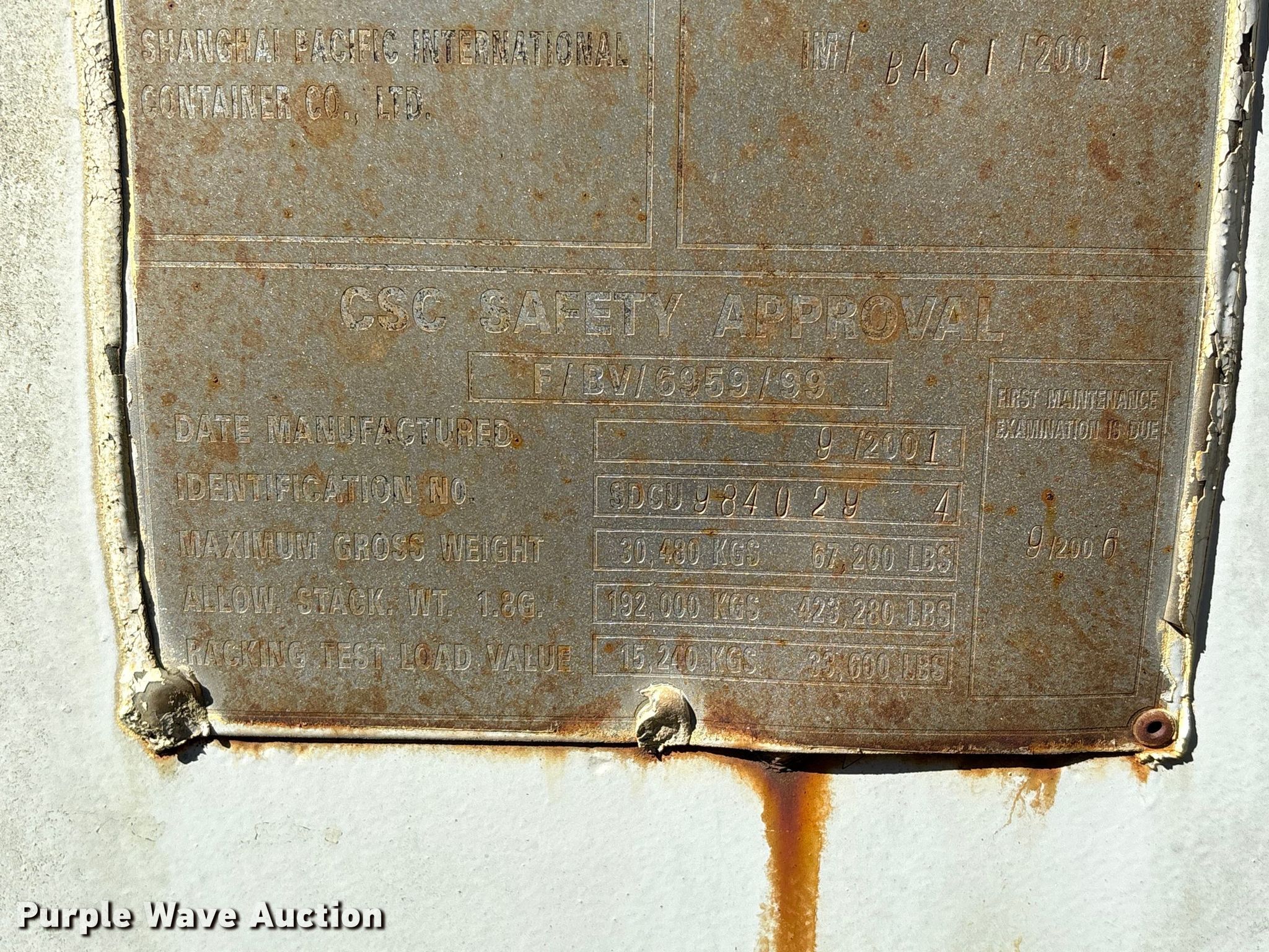 Purple Wave is selling a used Storage or Shipping Container in Louisiana. This item is a 2001 shipping container with the following: Serial: SDCU984294