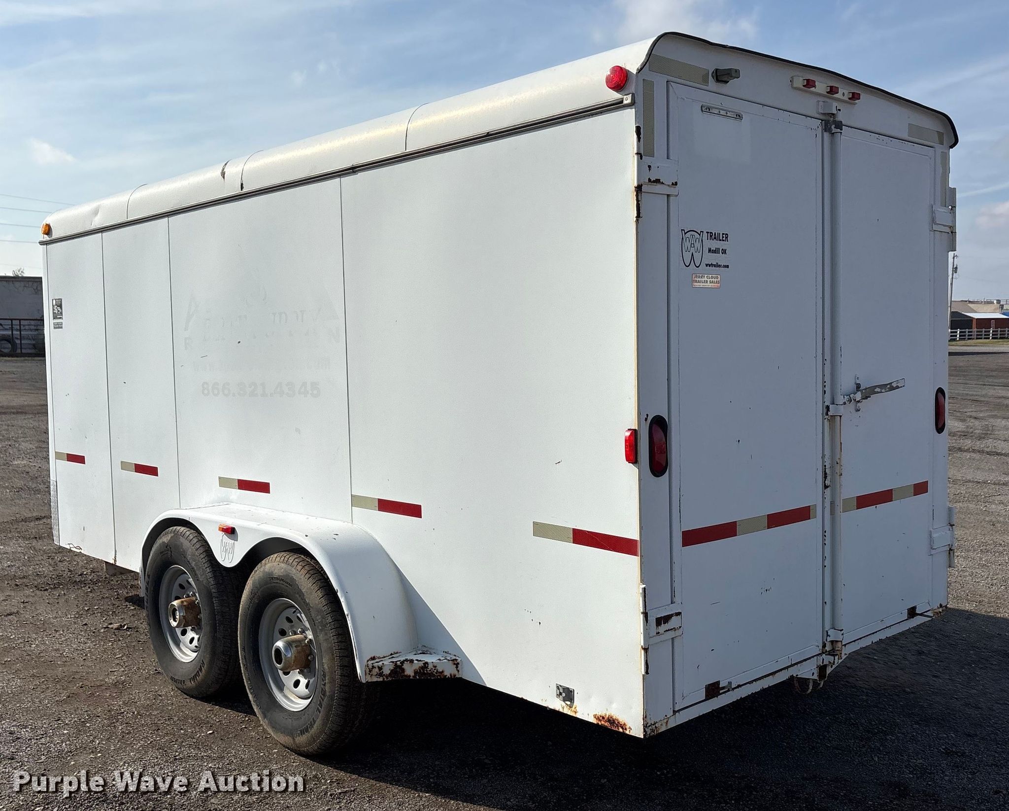 2014 W-W enclosed cargo trailer. VIN: 11W3C1625EW311304. Dimensions Overall Length: 20', Width: 100", Body Length: 16", Width: 80", Rear door / ramp 75" L x 68" W. Features Deck type: Wood. Chassis Ball hitch: 2 5/16", Landing gear: Single, Suspension: Torsion, Brakes: Electric, Axles: Tandem, GVWR: 12,000 lbs, GAWR: 6,000 lbs. Tires Steel wheels, Size: 235/85R16. Oklahoma title. Seller is a licensed motor vehicle dealer. The buyer may be required to pay sales tax and/or registration fees to the dealer prior to taking possession. Buyers may be required to provide identification to the licensed dealer to comply with state laws. Title will be assigned and distributed by the dealer. Please contact the seller for distribution questions. McAlester, OK 74502