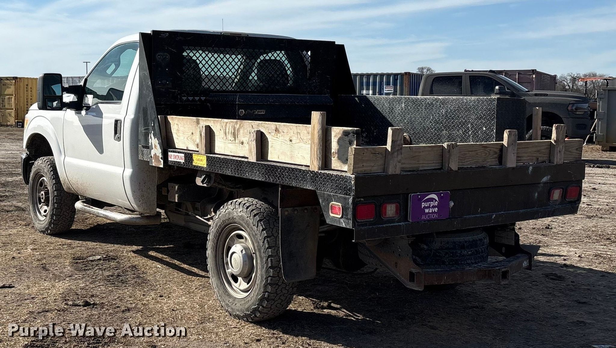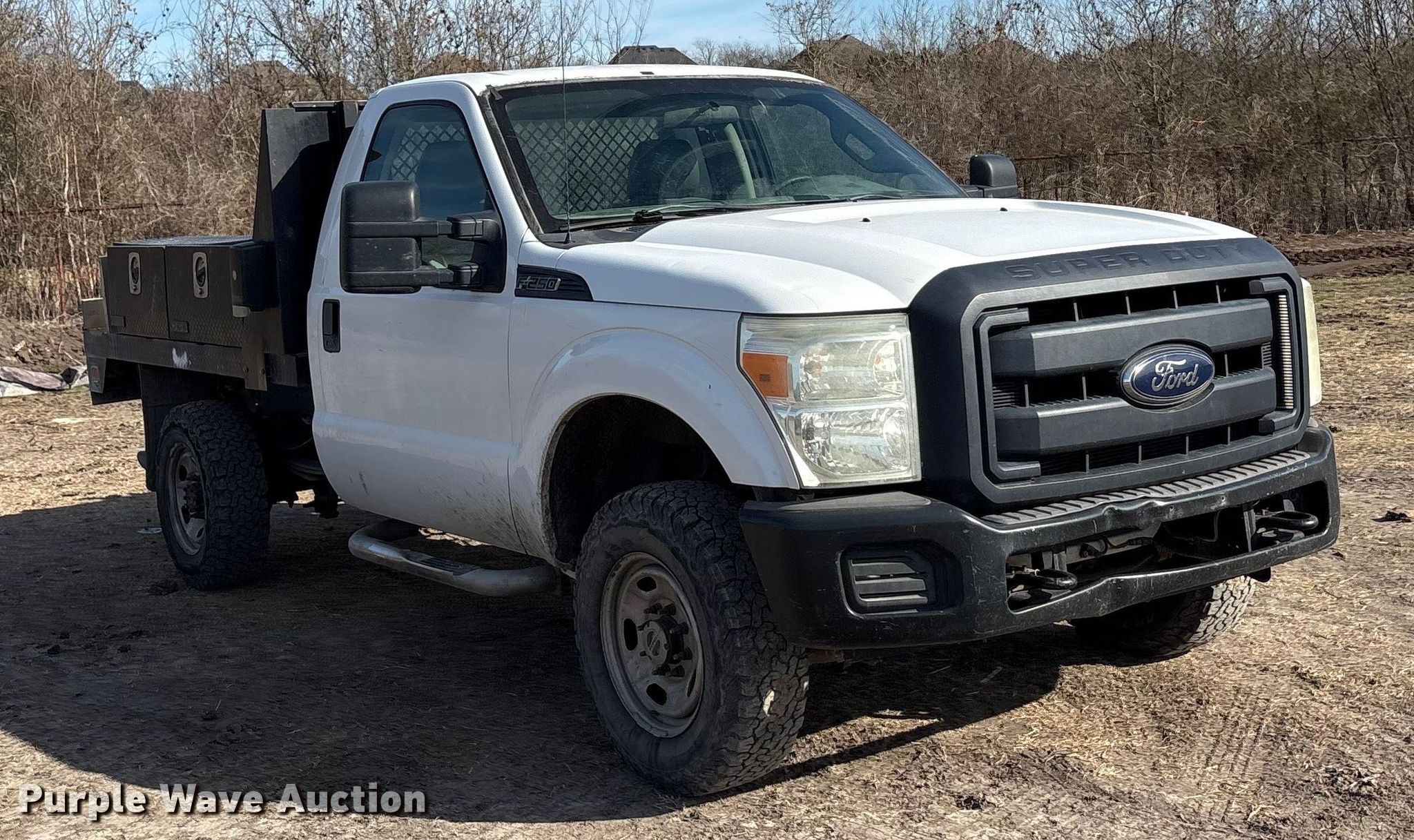 This 2013 Ford F250 Super Duty XL flatbed pickup truck will sell to the highest bidder regardless of price.