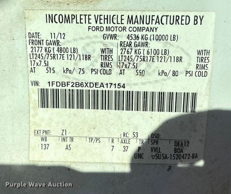 - VIN: 1FDBF2B6XDEA17154