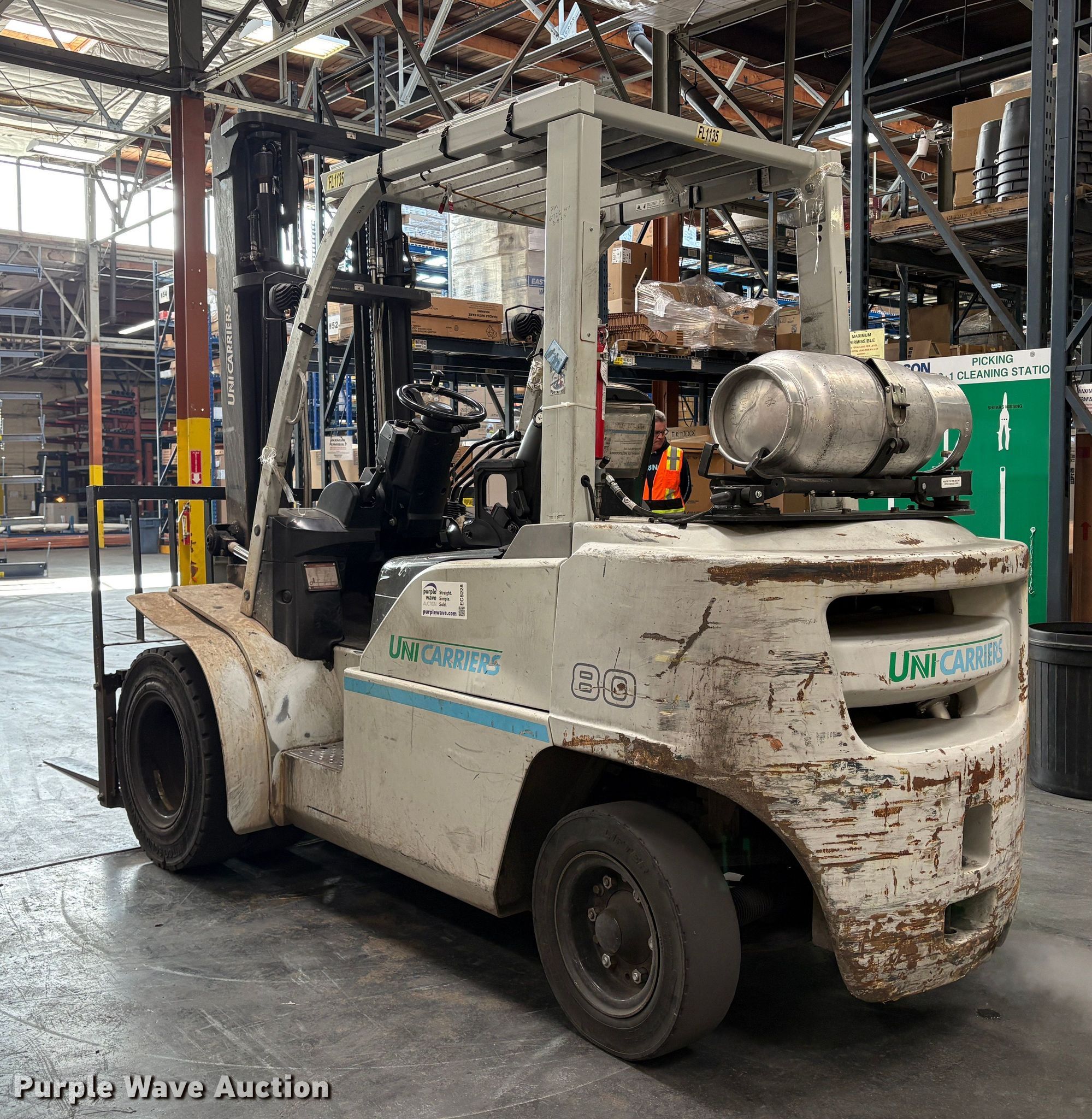 Purple Wave is selling a used Cushion Tire or Pneumatic Forklift in California. This item is a 2015 Nissan PF100YLP forklift with the following: Hours: 7,247 on meter, Serial: J1F4-981135, Unit #: SFS2900
