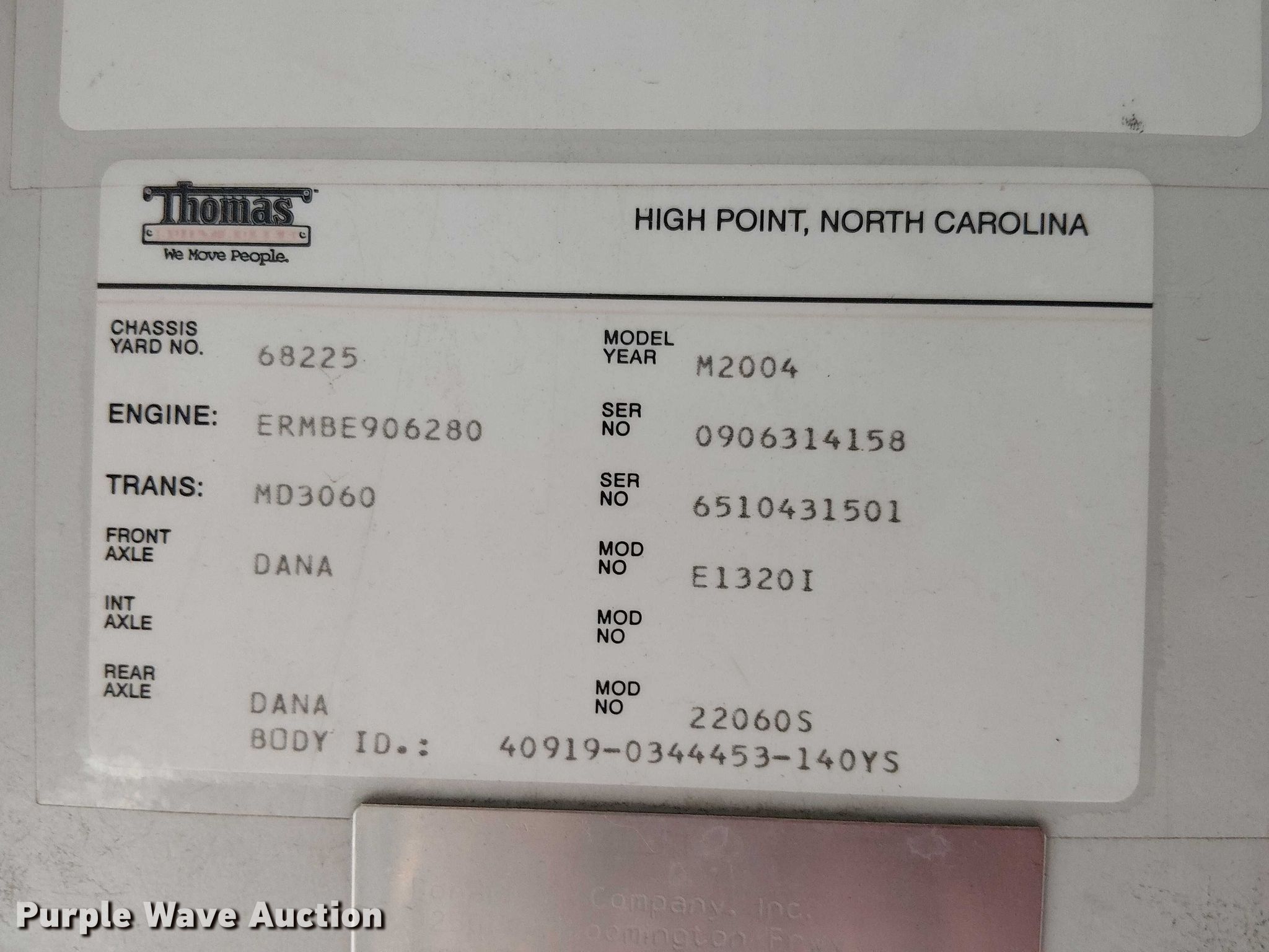 Purple Wave is selling a used Bus in Arizona. This item is a 2004 Thomas Built HDX school bus with the following: Miles: 208,833 on odometer, VIN: 1T7YT3B2241140919