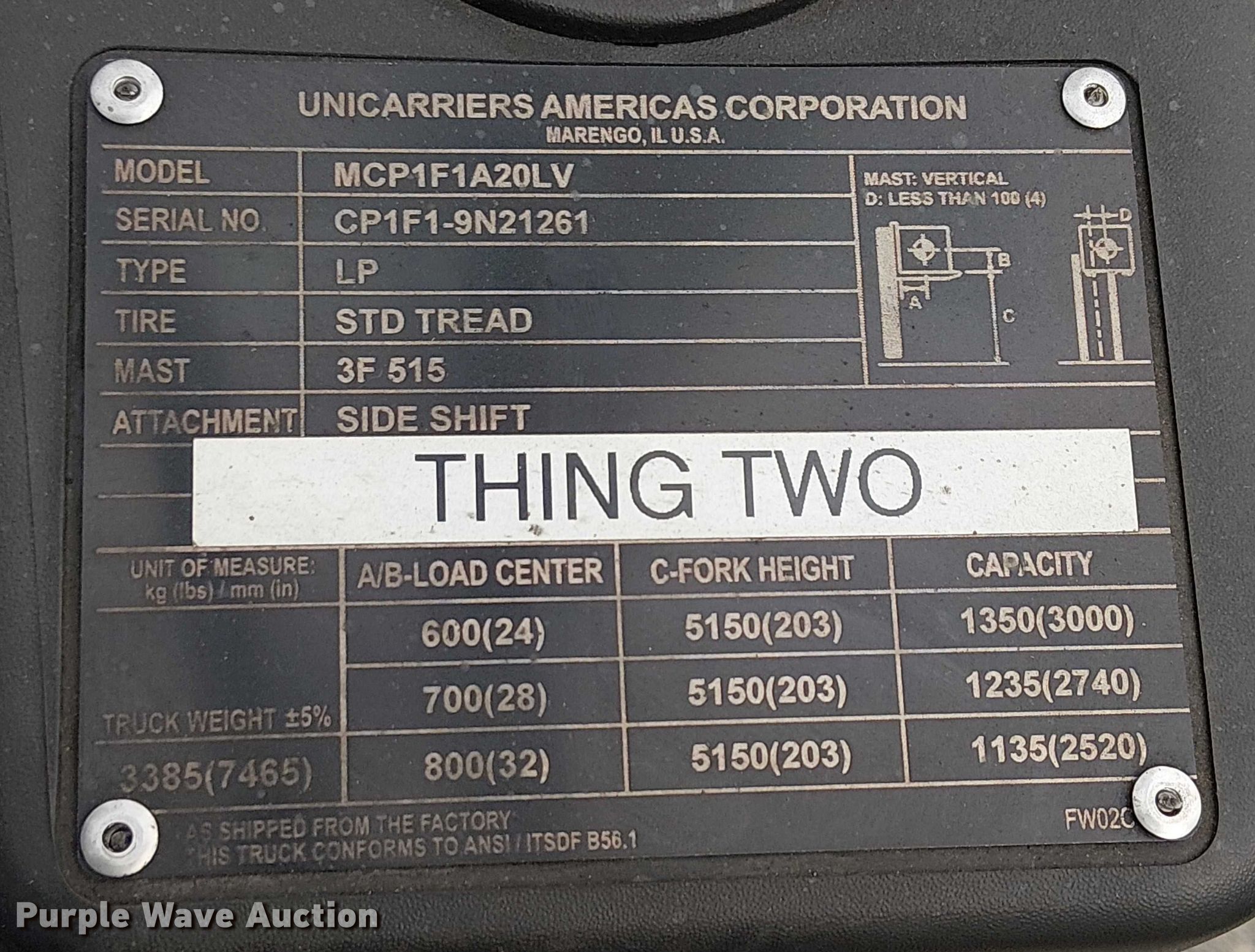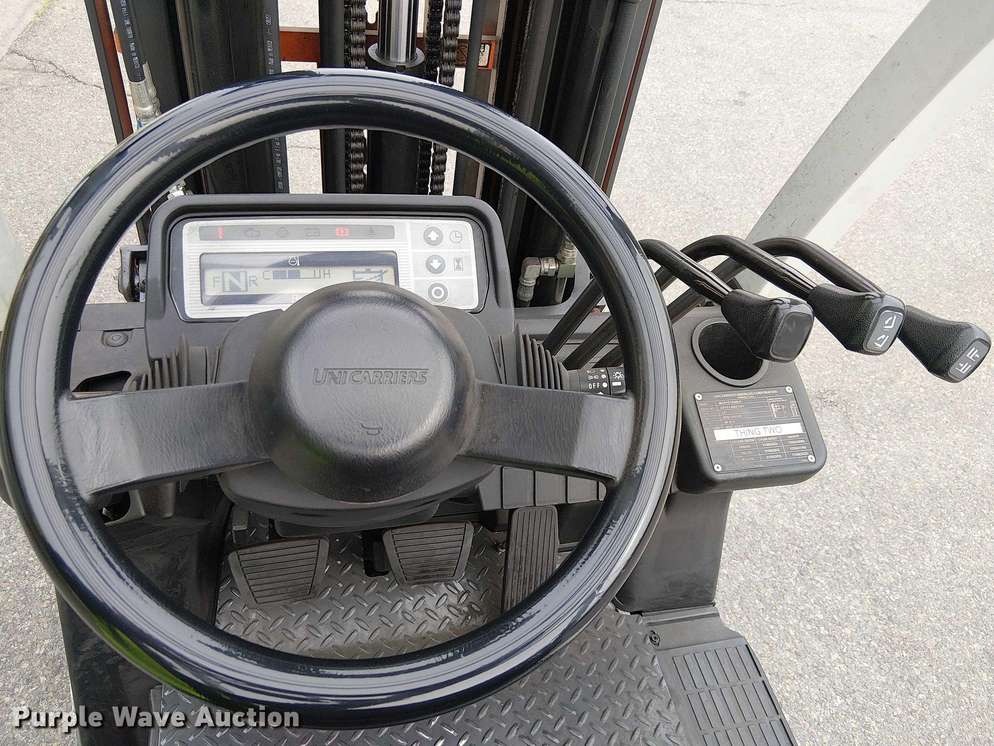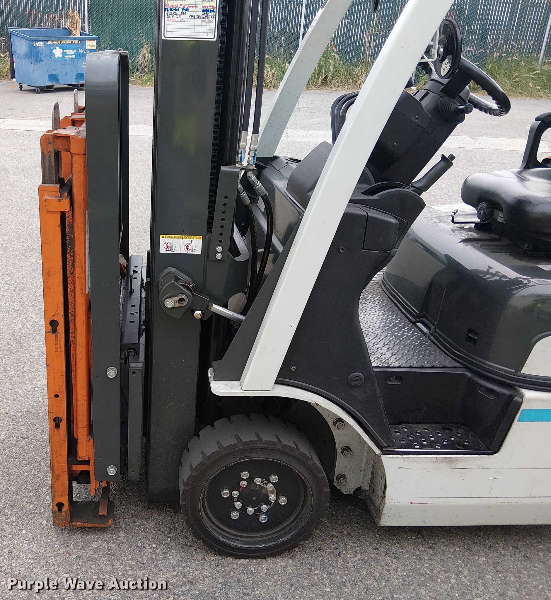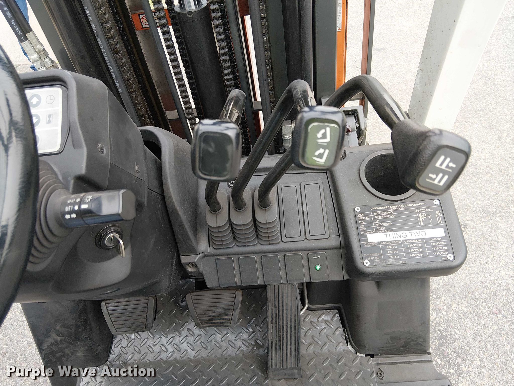 Purple Wave is selling a used Cushion Tire or Pneumatic Forklift in California. This item is a 2017 UniCarriers CFS40 forklift with the following: Hours: 1,105 on meter, Miles or hours may vary, unit still in use, Serial: CP1F1-9N21261, Unit #: SFS2887