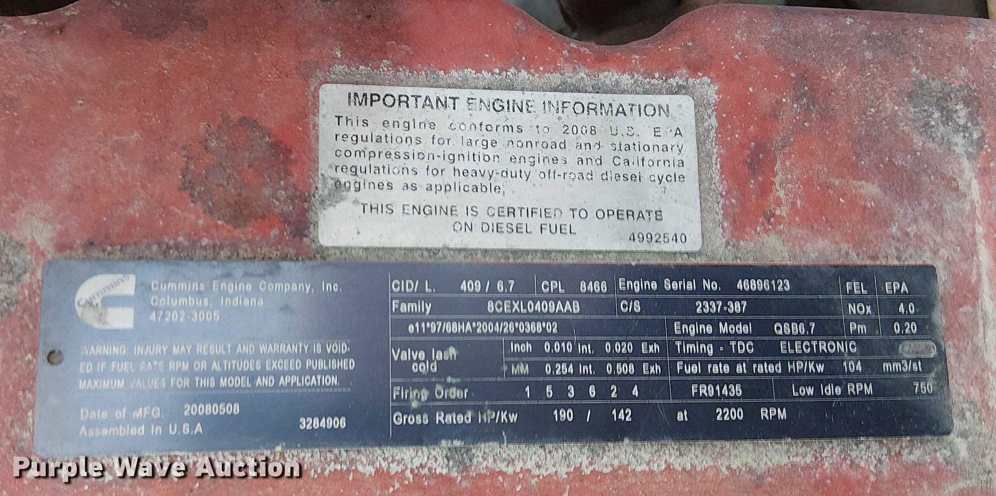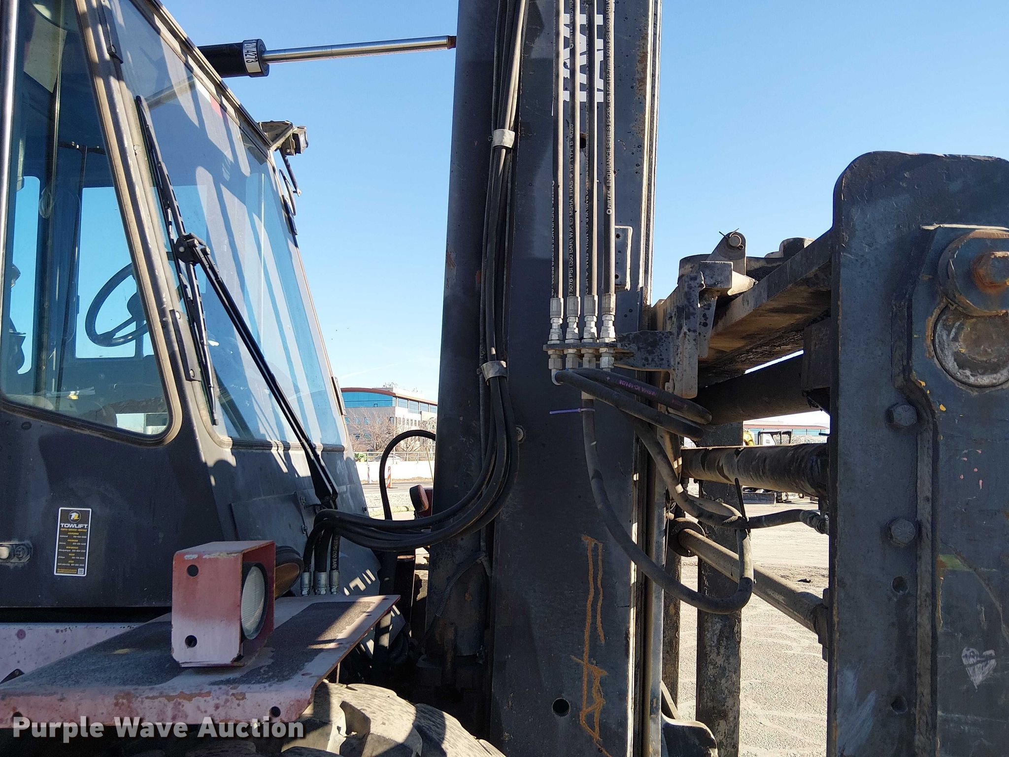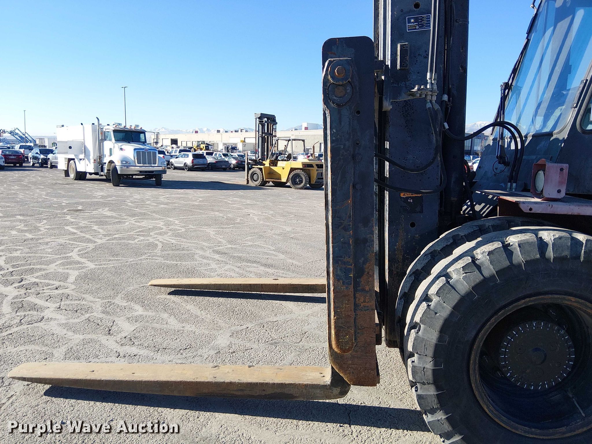 2009 Taylor TXH400L forklift. Hours: 25,436 on meter, Serial: S CK 35530. Engine Cummins ISB, Serial: 46806123, Displacement: 6.7L, Cylinders: 6, Fuel type: Diesel, HP: 190, kW: 142. Transmission Powershift. Operators station Enclosed cab, AC, Heat. Features Maximum lift capacity: 38,200 lbs, Maximum lift height: 132", Collapsed mast height: 166", Mast stages: 2, Side shift, Mast tilt, Fork positioner, Fork length: 80". Tires Front: 12.00-24, Rear: 12.00R24. Wheeler Machinery Co.. Salt Lake City, UT 84104