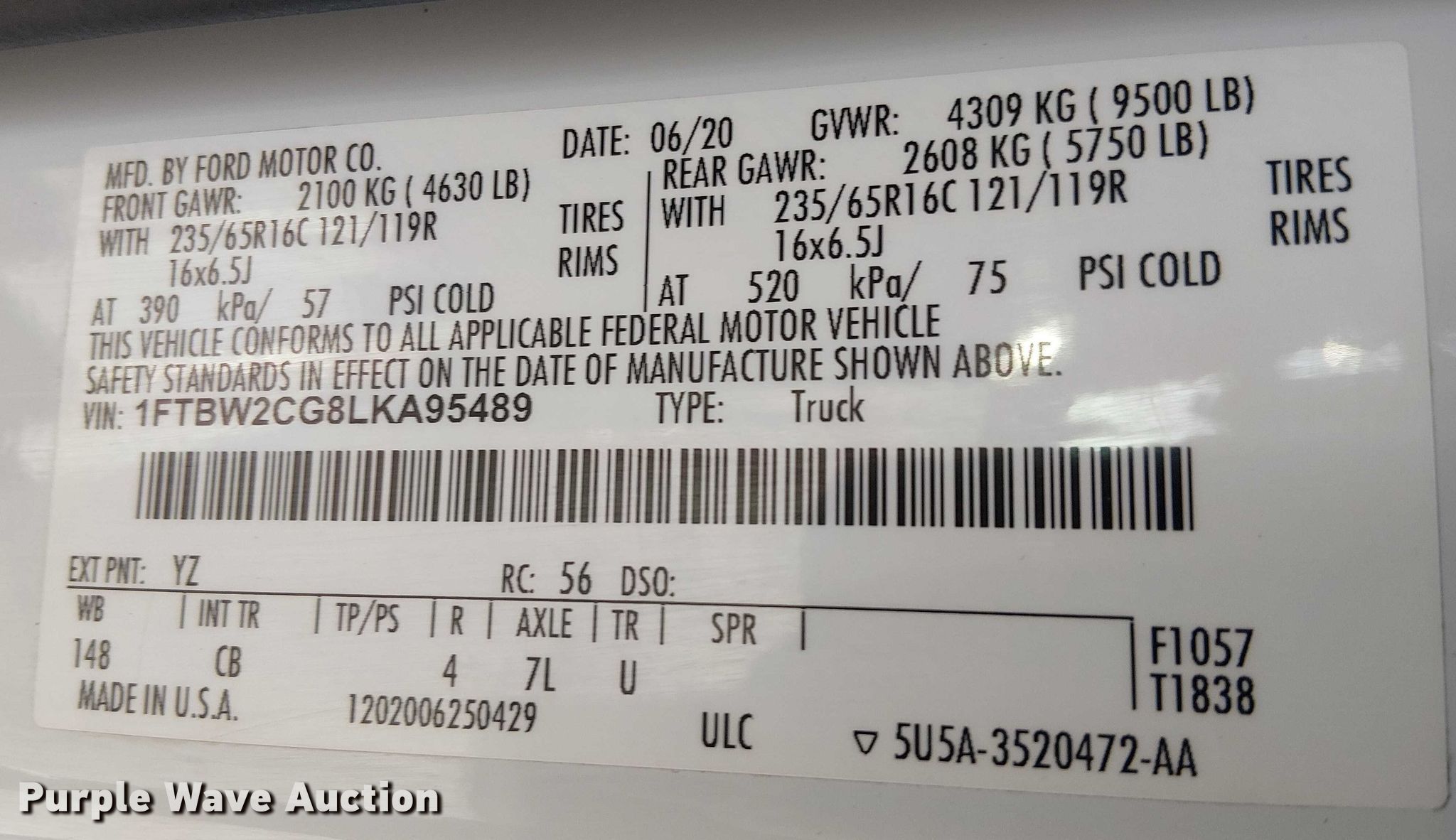 Purple Wave is selling a used 3/4 or 1 Ton Pickup or Van in Utah. This item is a 2020 Ford Transit 350 utility van with the following: Miles: 99,196 on odometer, Hours: 1,370 on meter, VIN: 1FTBW2CG8LKA95489