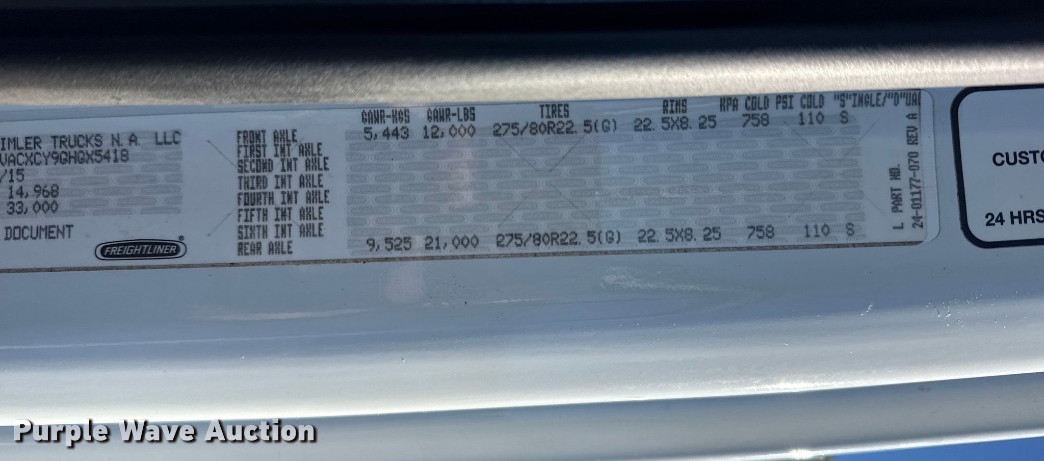 2016 Freightliner Business Class M2 rollback truck. Miles: 326,204 on odometer, Hours: 16,853 on meter, VIN: 1FVACXCY9GHGX5418. Engine Cummins ISL, Displacement: 8.9L, Cylinders: 6, Fuel type: Diesel. Transmission Automatic. Chassis Differential lock: Inter-axle, Axles: Single, Brakes: Air, PTO, GVWR: 33,000 lbs. Interior AC, Heat, Heated mirrors, Power windows, Power locks, Cruise control. Features Bed Wrecker bed, Loadoll, Length: 23' 9", Width: 102", Wrecker boom: Hydraulic extendable. Tires Size: 295/75R22.5. Notes Windshield chipped or cracked. Oklahoma title. Seller is an Oklahoma licensed motor vehicle dealer. Buyers may be required to provide identification to the licensed dealer to comply with state laws. Title will be assigned and distributed by the dealer. Please contact the seller for distribution questions. Title distribution may be delayed up to 30 days from verification of funds. Collinsville, OK 74021