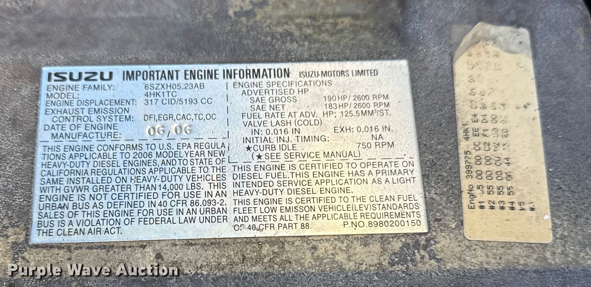 2007 Isuzu NQR box truck. Miles: 347,440 on odometer, VIN: JALE5B16377901983. Engine Isuzu 4HK1-TC, Displacement: 5.2L, Cylinders: 4, Fuel type: Diesel. Transmission Automatic. Chassis Axles: Single, Suspension: Spring, Brakes: Hydraulic. Interior AC, Heat, Power windows, Power locks, Cruise control, Brake controller. Features Bed Box bed, Morgan GVSDO8516096, Serial: MGA06VB31817003, Length: 16' 6", Width: 96", Height: 91", E-track rail system. Tires Size: 225/70R19.5. Notes Windshield chipped or cracked, Box bed damaged, Floor damaged. Oklahoma title. Seller is an Oklahoma licensed motor vehicle dealer. Buyers may be required to provide identification to the licensed dealer to comply with state laws. Title will be assigned and distributed by the dealer. Please contact the seller for distribution questions. Title distribution may be delayed up to 30 days from verification of funds. Collinsville, OK 74021