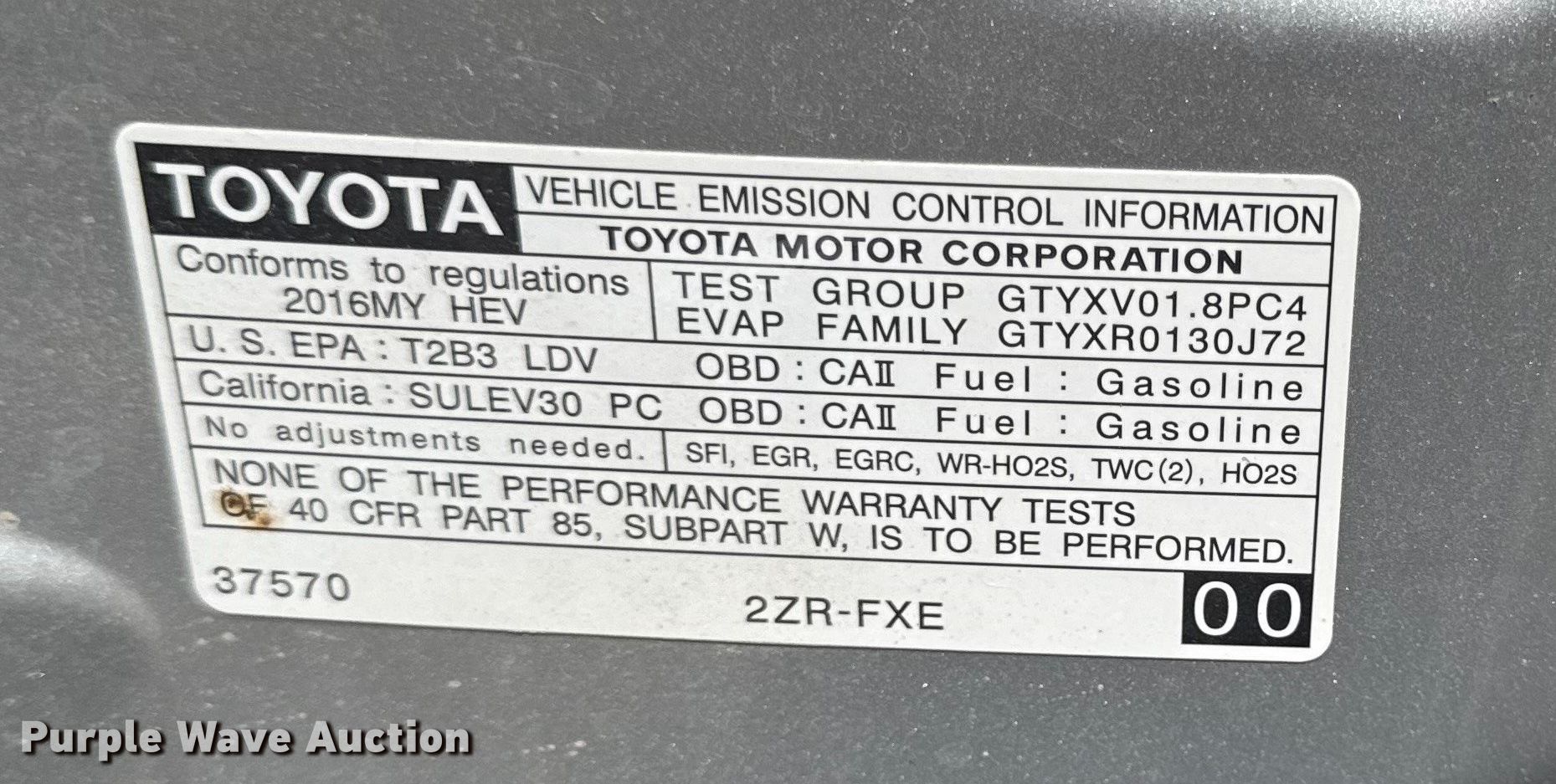 2016 Toyota Prius | Wednesday February 25 Vehicles and Equipment Auction
