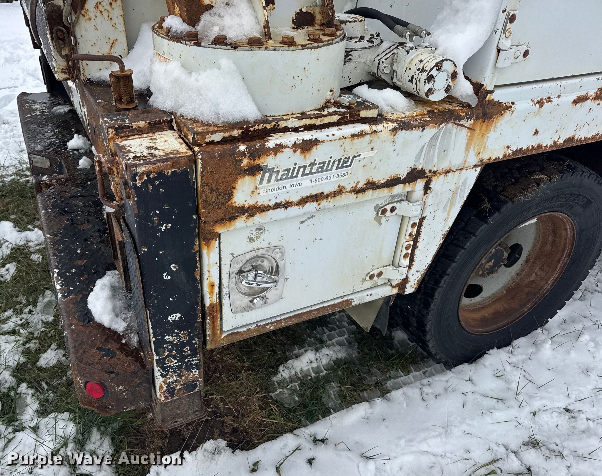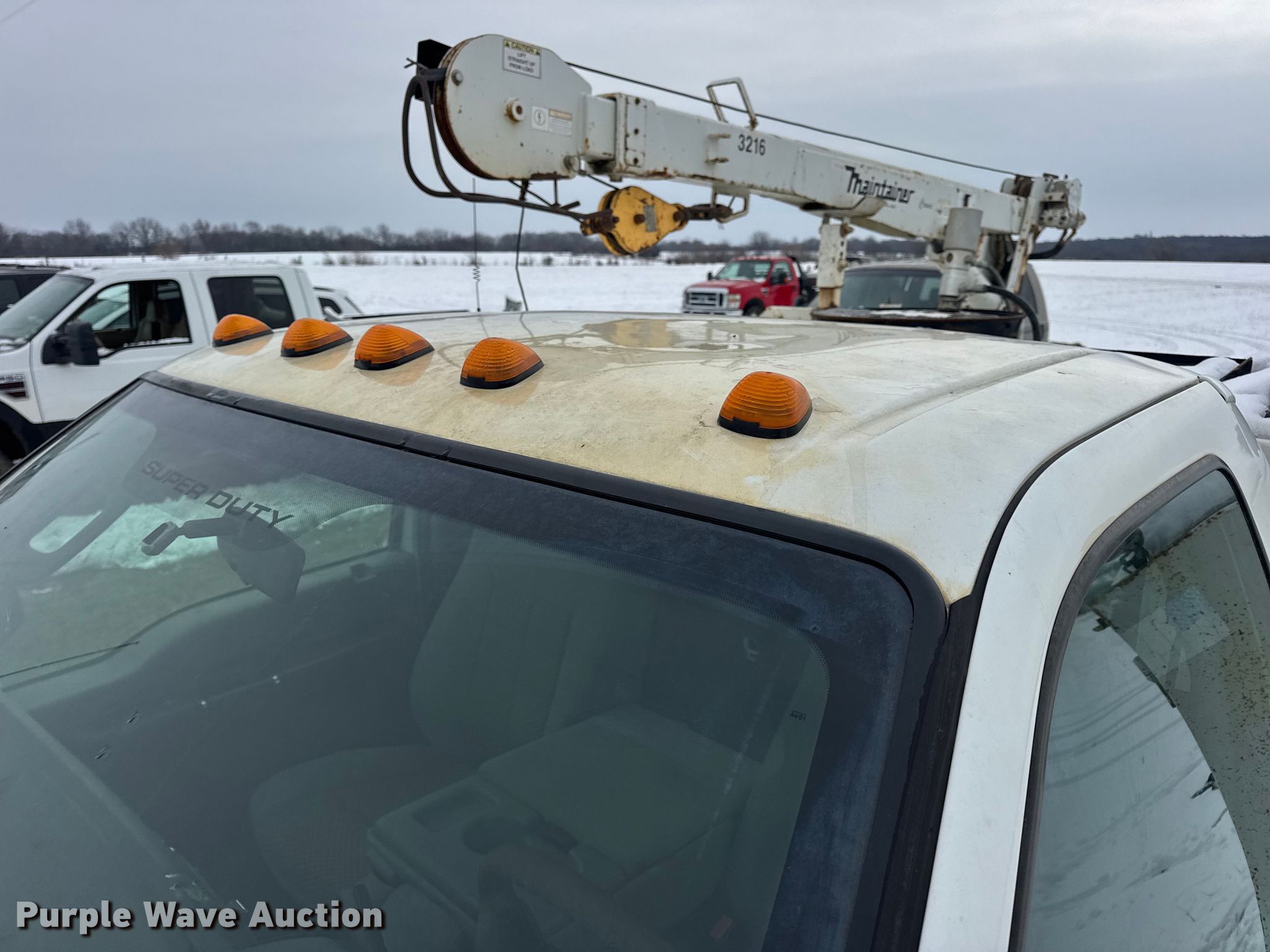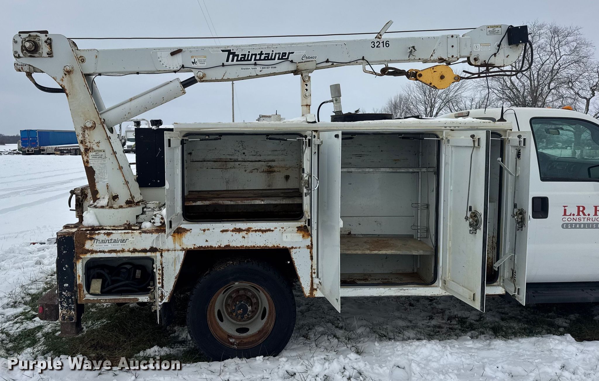 2012 Ford F550 utility / service truck. Miles: 97,076 on odometer, VIN: 1FDUF5HT8CED16728. Engine Displacement: 6.7L, Cylinders: 8, Fuel type: Diesel. Transmission Automatic. Chassis Four wheel drive, Axles: Single, Suspension: Spring, Brakes: Hydraulic, PTO, GVWR: 19,500 lbs. Interior AC, Heat, Heated mirrors, Power windows, Power locks, Cruise control, Auxiliary controls, Brake controller. Features Bed Utility bed, Maintainer, Length: 11' 8", Width: 95", Air compressor, Hose reels, Crane Maintainer 3316. Tires Size: 245/70R19.5. Notes Dash warning indicator: Check engine, Windshield chipped or cracked, Jump start required during on-site data collection, Unknown operating condition of air compressor, Boom remote control issues, will not go up with remote. Missouri title. Title distribution may be delayed up to 30 days from verification of funds. Tri State Timber Company. Memphis, MO 63555