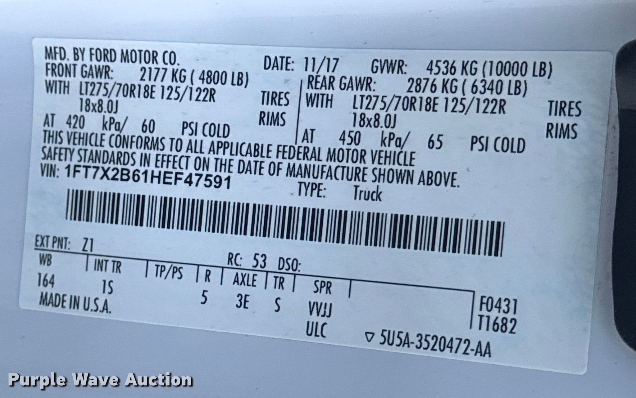 - VIN: 1FT7X2B61HEF47591