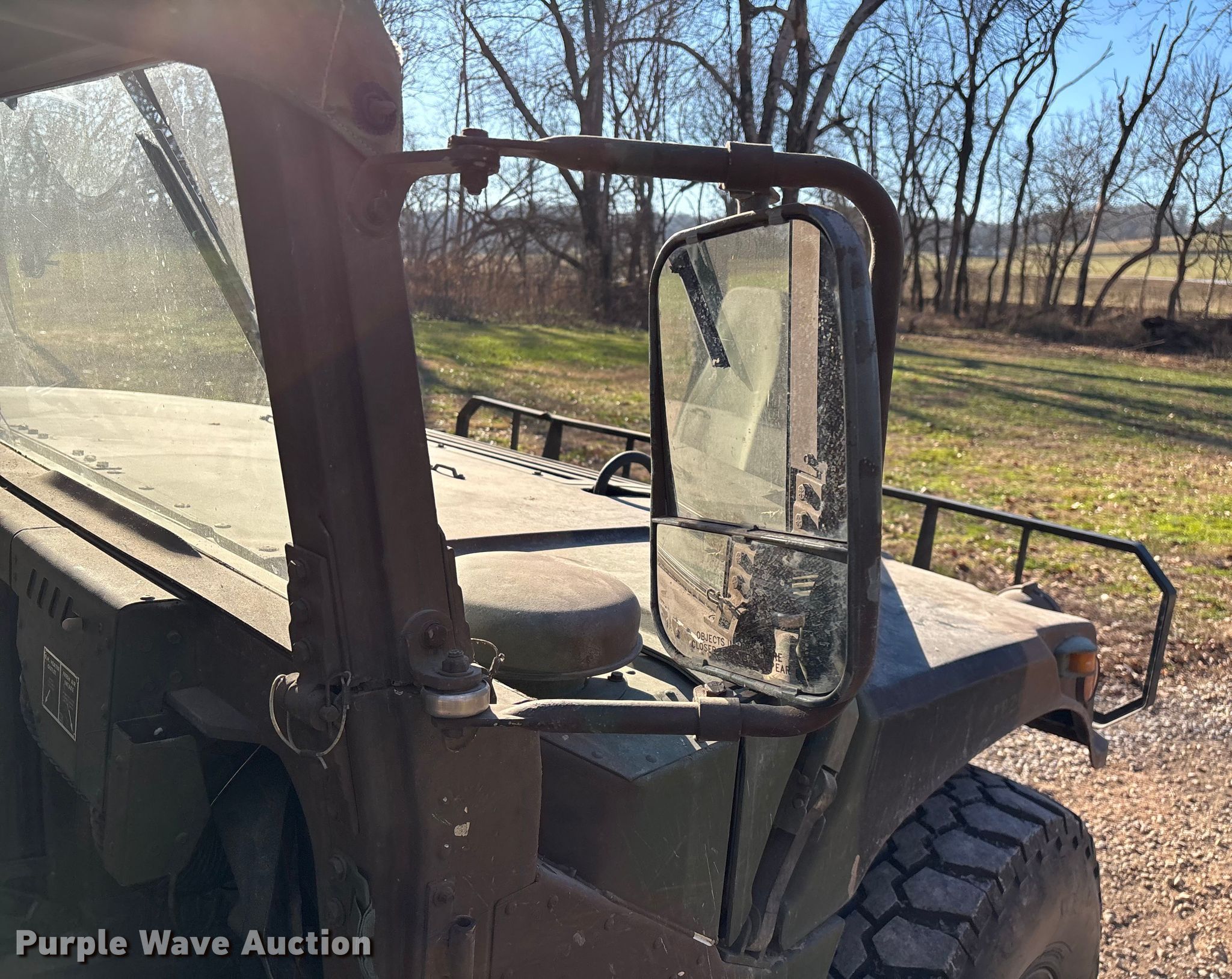 1993 AM General M998 HMMWV SUV. Miles: 20,016 on odometer, VIN: 142040. Engine Cylinders: 8, Fuel type: Diesel. Transmission Automatic, Four wheel drive. Interior Heat. Tires Size: 37x12.50R16.5LT. Notes Passenger sear not secured. Missouri non-usa-std motor vehicle title. Title distribution may be delayed up to 14 days from verification of funds. Mareth Enterprises, LLC. Verona, MO 65769
