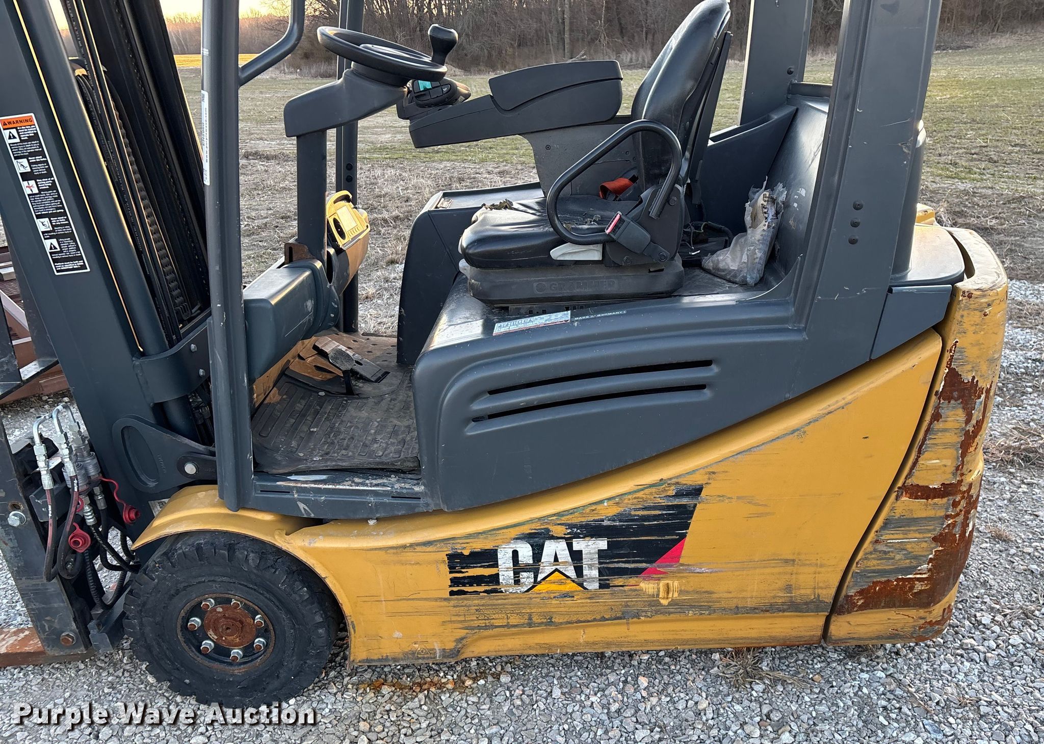 Purple Wave is selling a used Cushion Tire or Pneumatic Forklift in Missouri. This item is a Caterpillar 2ET3000 forklift with the following: Hours: Unknown, Serial: FN611382