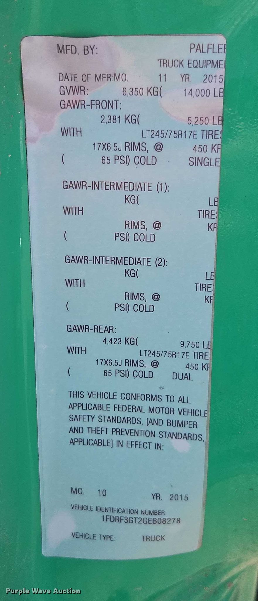 - VIN: 1FDRF3GT2GEB08278