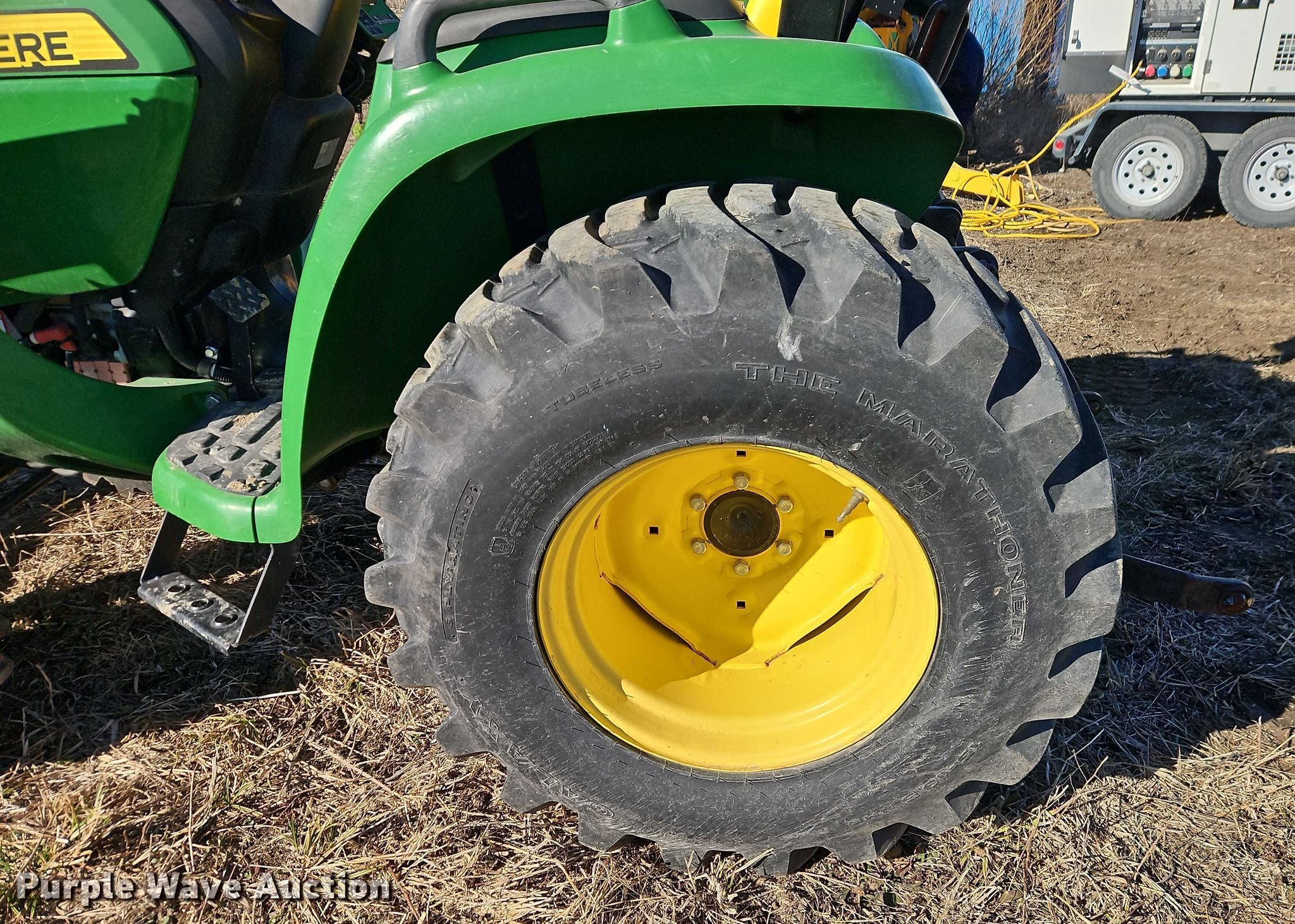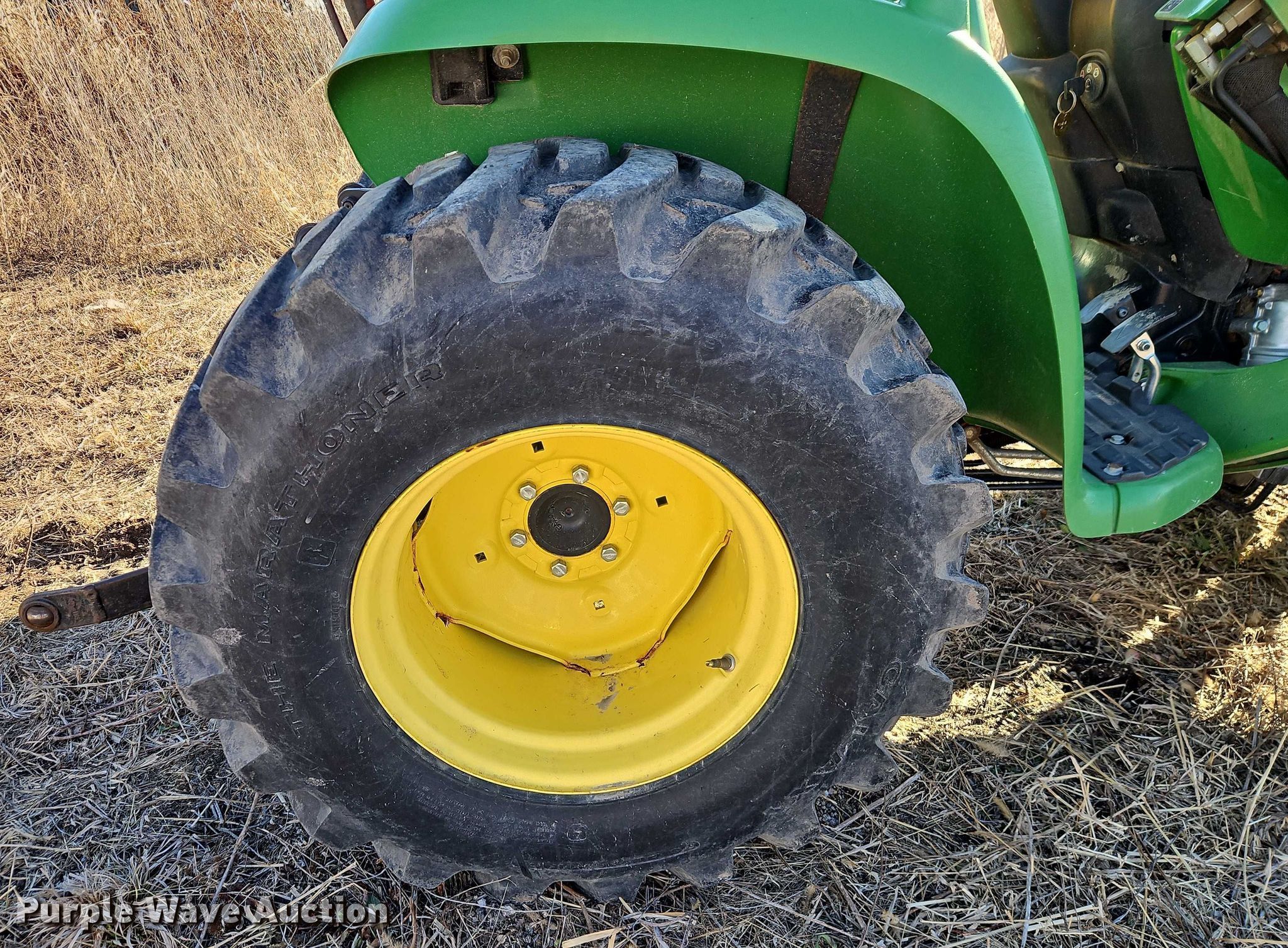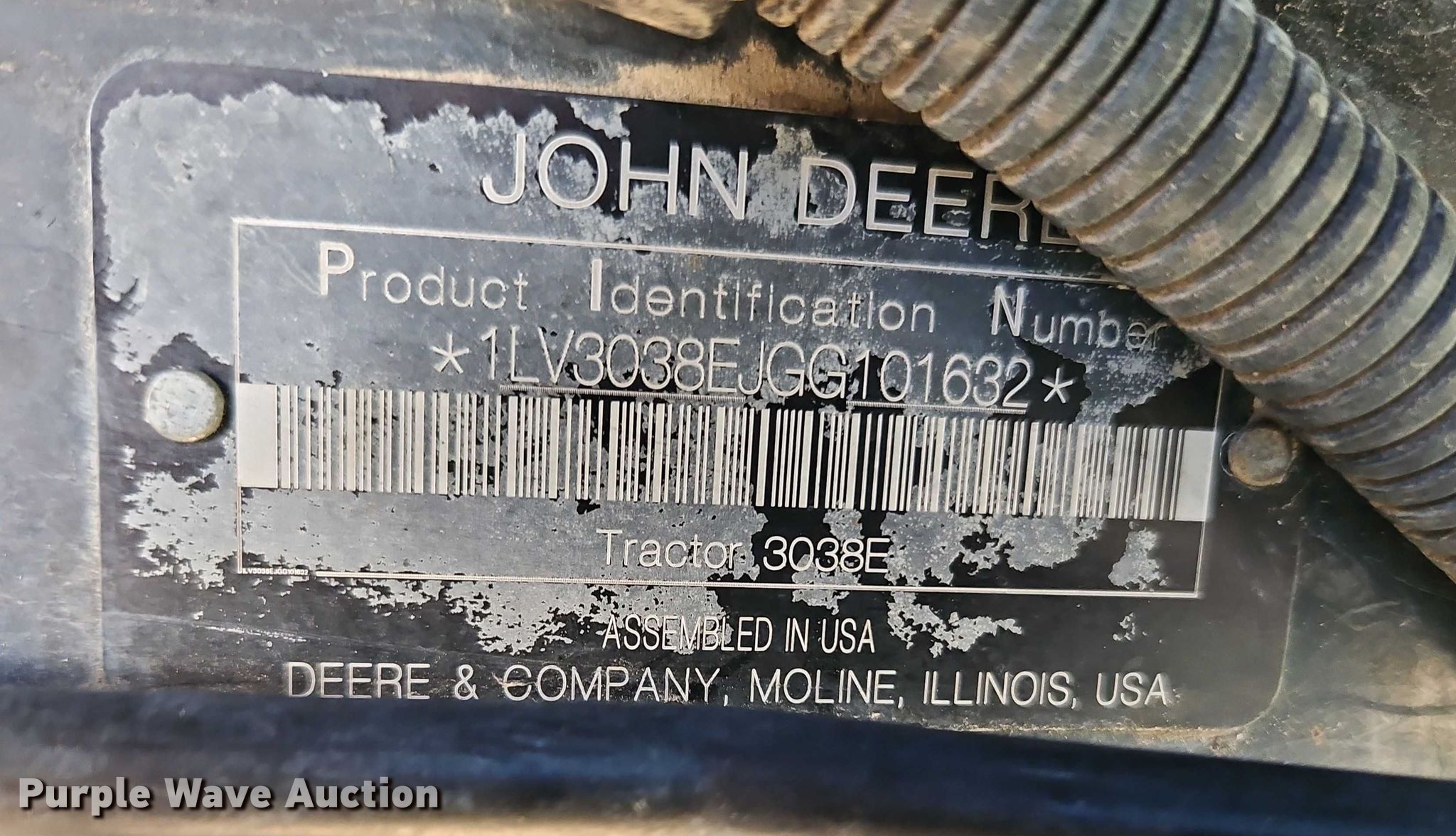 Purple Wave is selling a used Tractor in Kansas. This item is a John Deere 3038E MFWD tractor with the following: Hours: 920 on meter, Serial: 1LV3038EJGG101632
