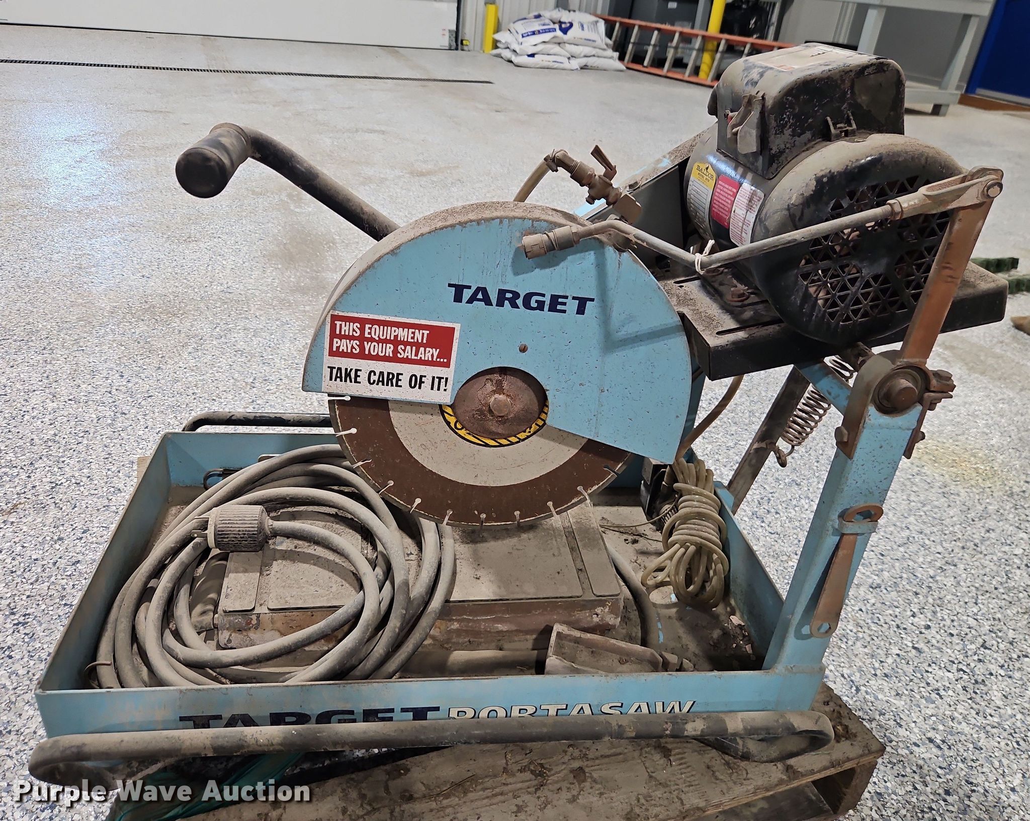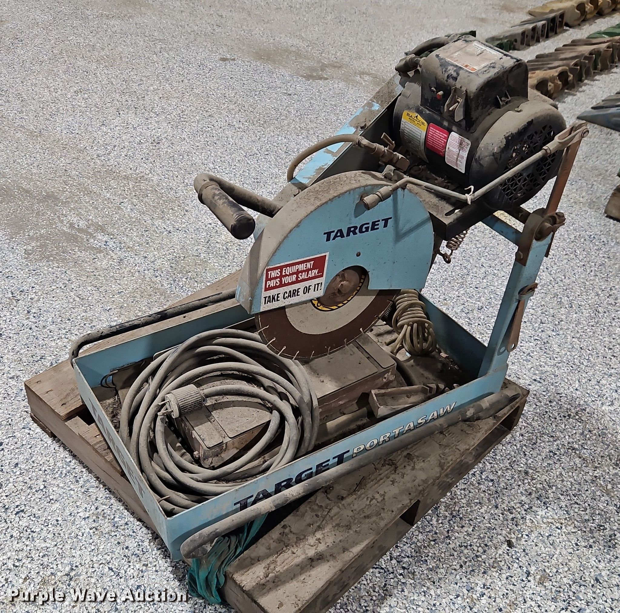 Purple Wave is selling a used Tools in Missouri. This item is a Target Portasaw masonry saw with the following: Baldor electric motor, HP: 1.5, Phase: Single