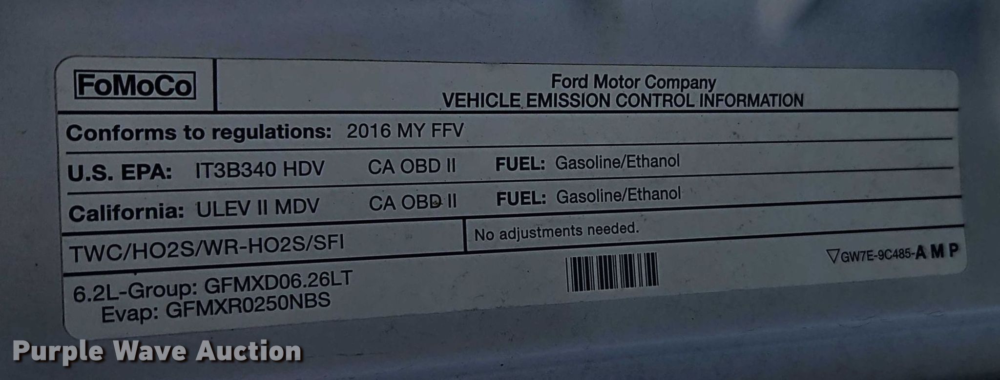 This 2016 Ford F250 Super Duty Ext. Cab pickup truck will sell to the highest bidder regardless of price.