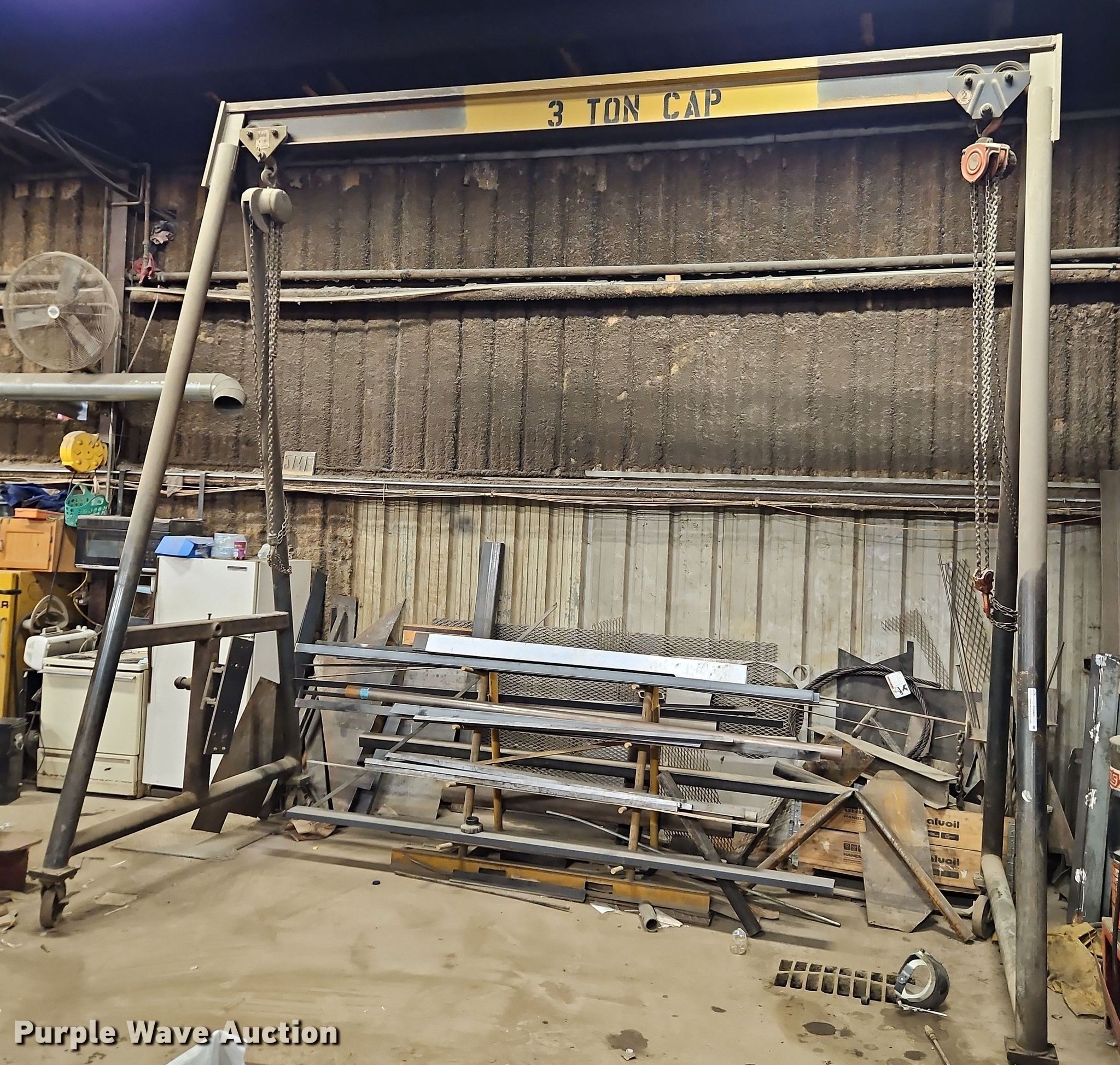 Purple Wave is selling a used Tools in Kansas. This item is a A-frame hoist with the following: Overall, Length: 6' 6", Width: 14', Height: 14', Capacity: 3,000 lbs