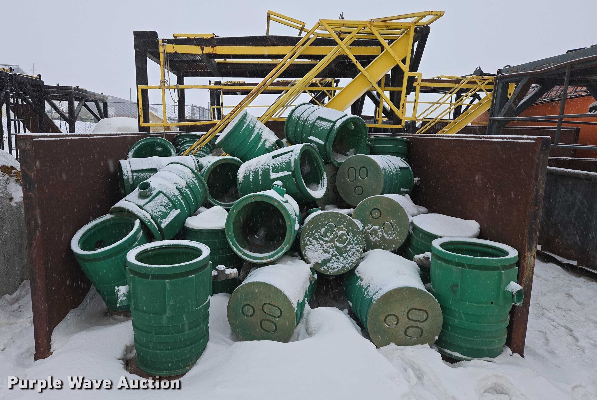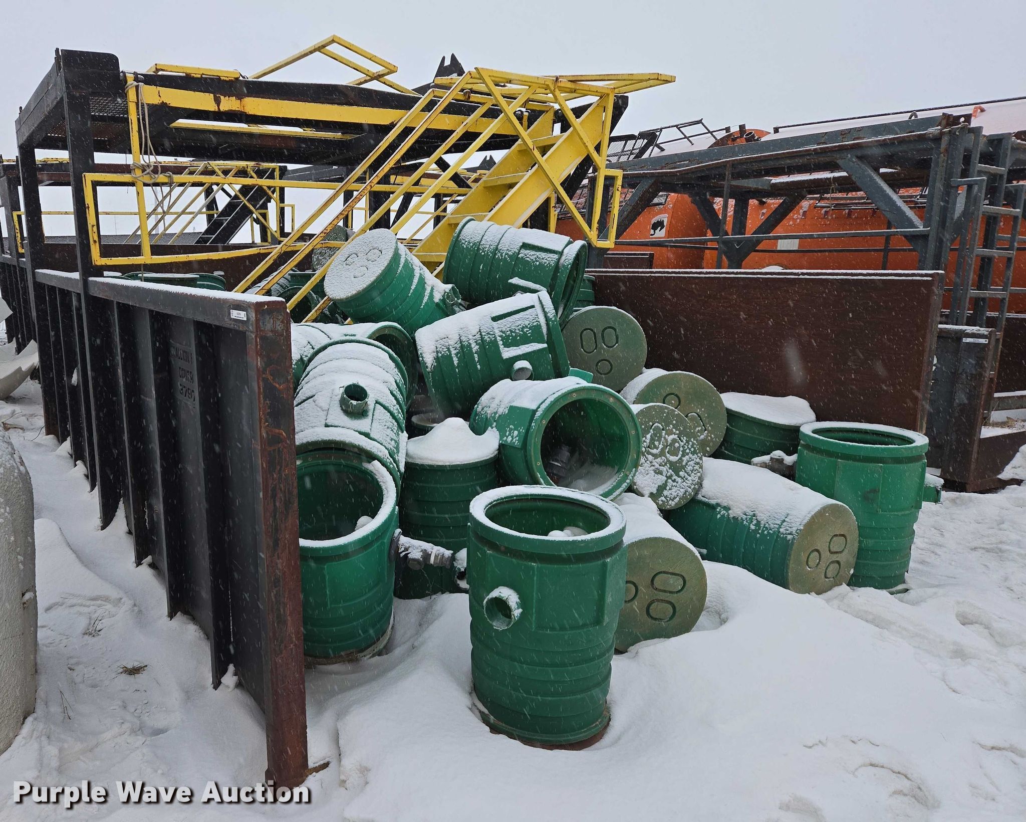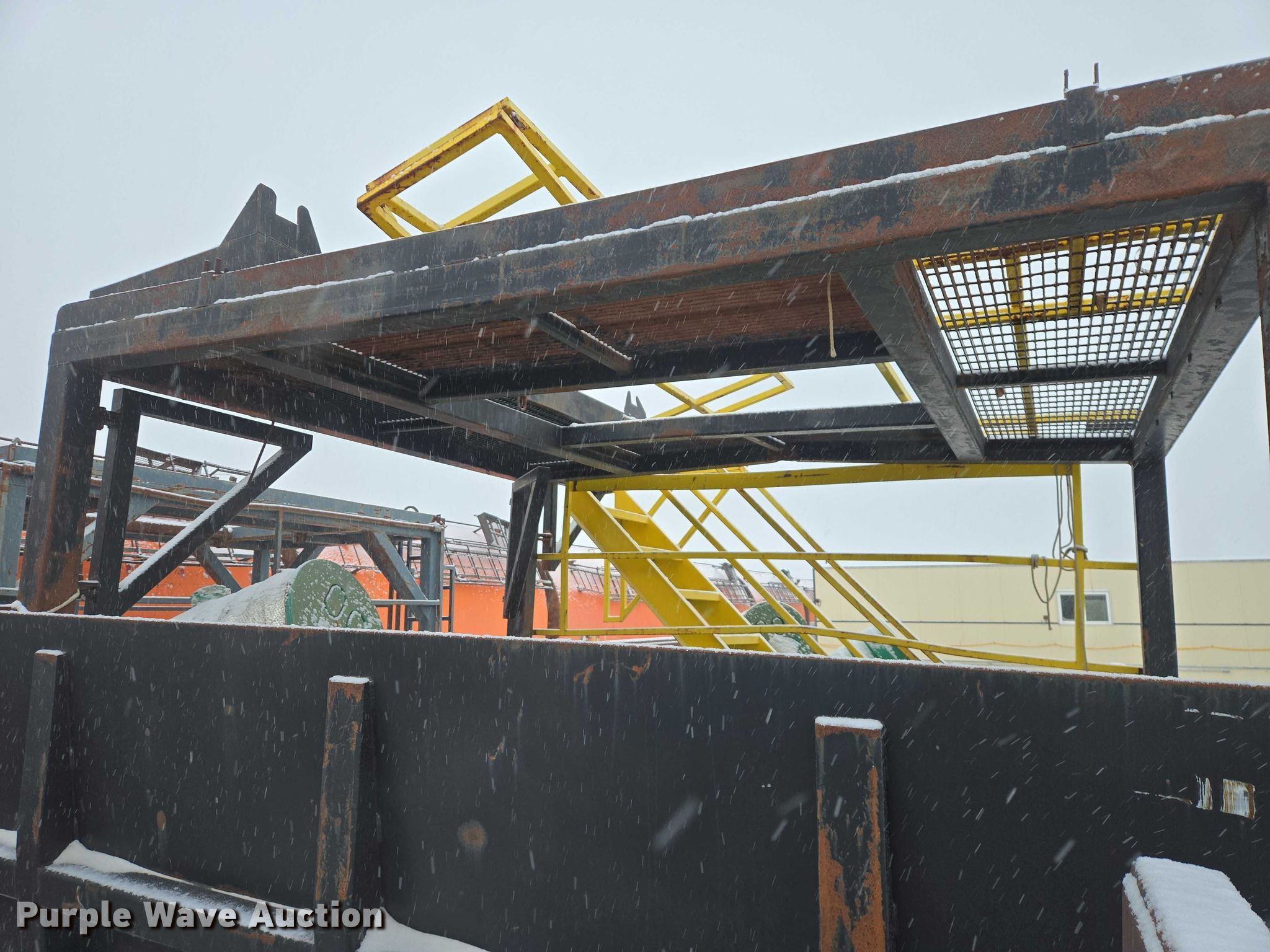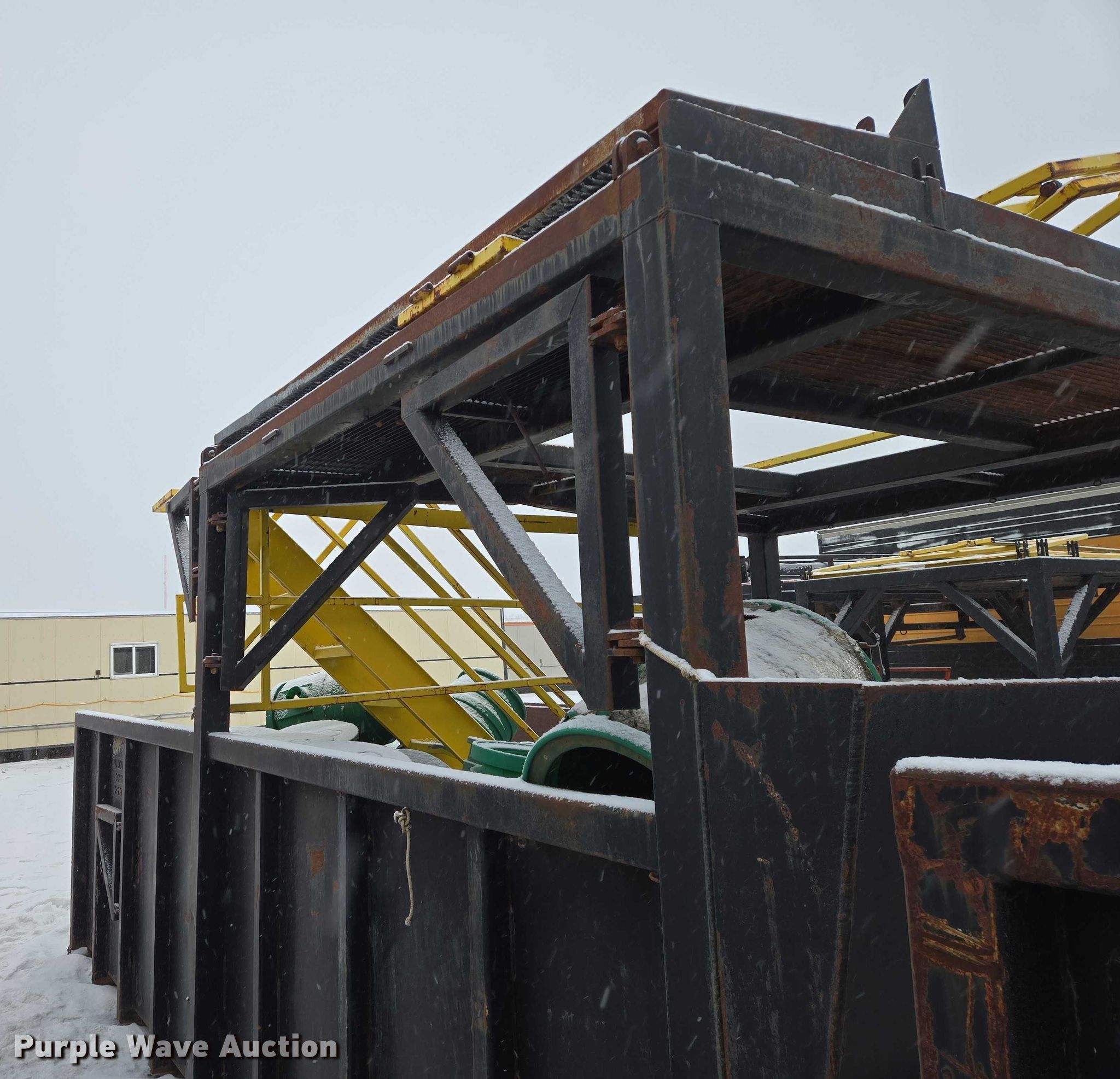 Roll-off container. Unit #: 37978. Dimensions Overall Length: 21', Width: 11' 11", Height: 64". Features Platform 11' 11"W x 10'L x 9'5"H, Skid mounted. Notes Barrels will be removed prior to auction date. Stallion Infrastructure Services. Williston, ND 58801