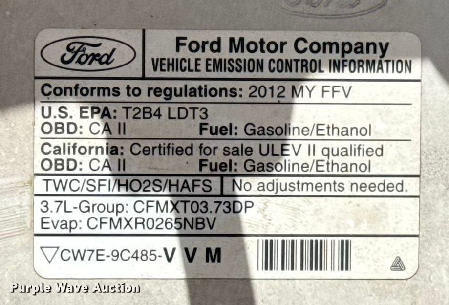 2012 Ford F150 Ext. Cab pickup truck. Miles: 161,031 on odometer, VIN: 1FTEX1CM3CKD98982, Unit #: D98982. Engine Displacement: 3.7L, Cylinders: 6, Fuel type: Gas, HP: 302. Transmission Automatic. Interior AC, Heat, Power windows, Power locks, Cruise control, Brake controller. Tires Size: 265/70R17. Notes Dash warning indicator: Check engine, Windshield chipped or cracked, Tie rods needs replaced. Oklahoma title. Title distribution may be delayed up to 30 days from verification of funds. Gemini Motor Transport. Oklahoma City, OK 73127