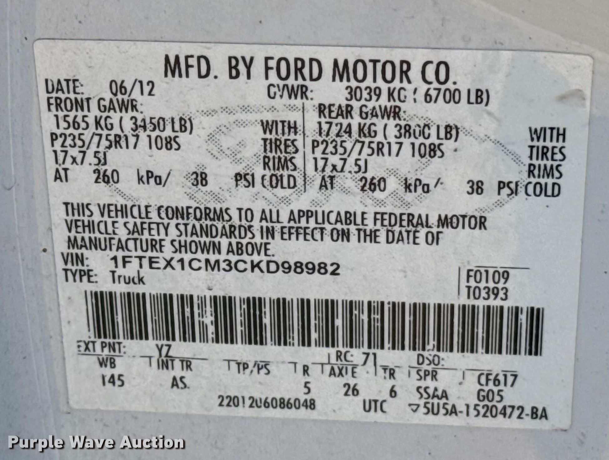 Purple Wave is selling a used 1/2 Ton Pickup or Van in Oklahoma. This item is a 2012 Ford F150 Ext. Cab pickup truck with the following: Miles: 161,031 on odometer, VIN: 1FTEX1CM3CKD98982, Unit #: D98982