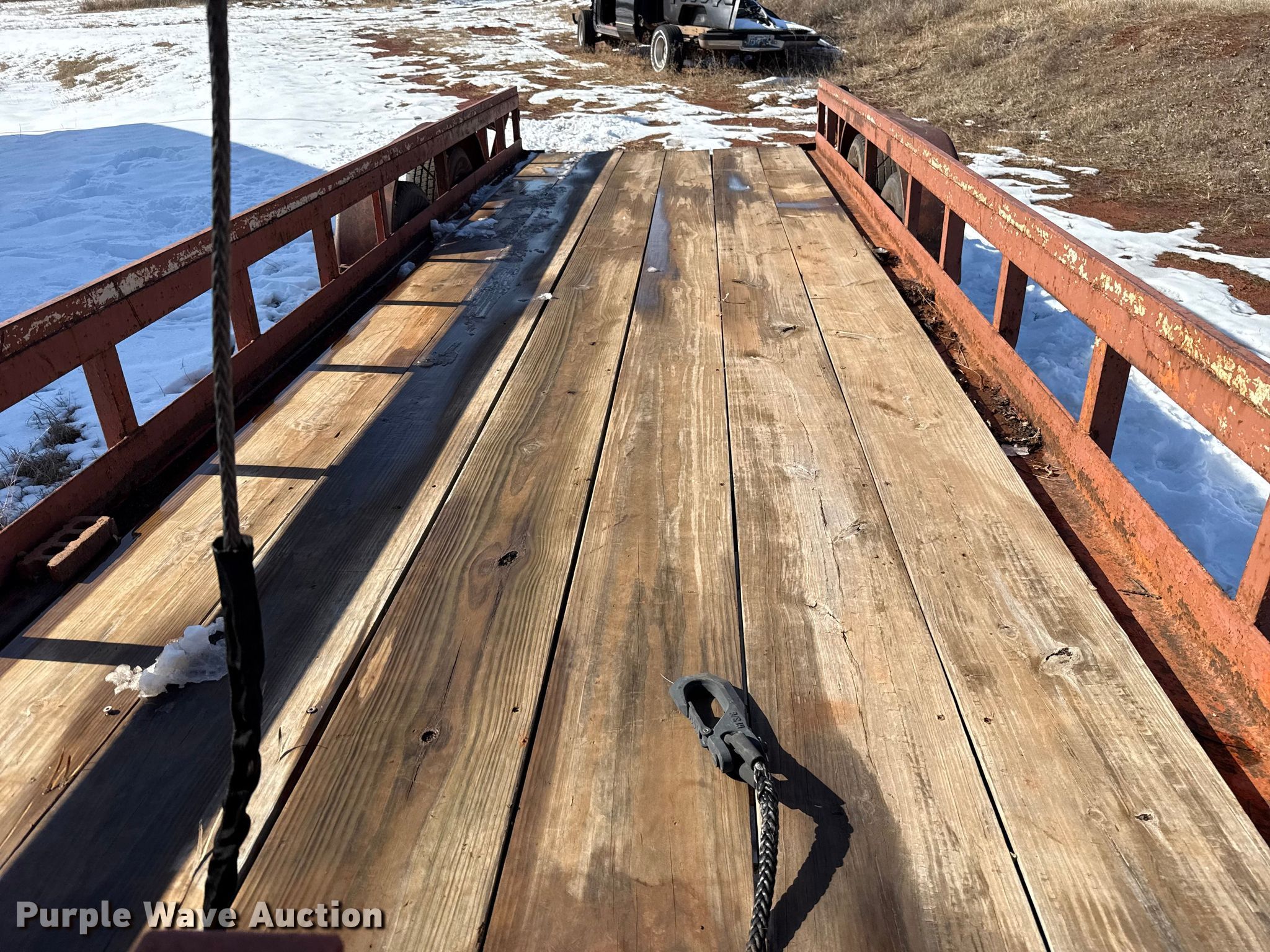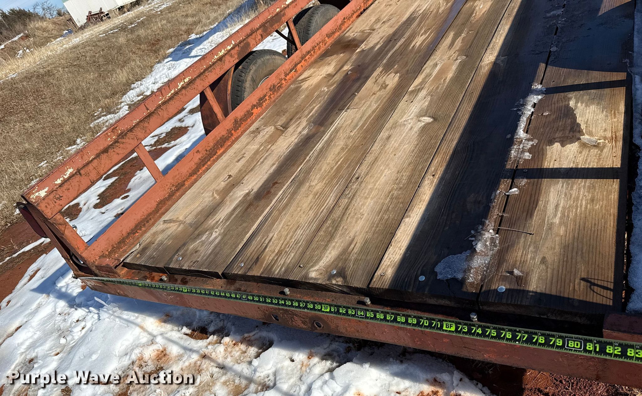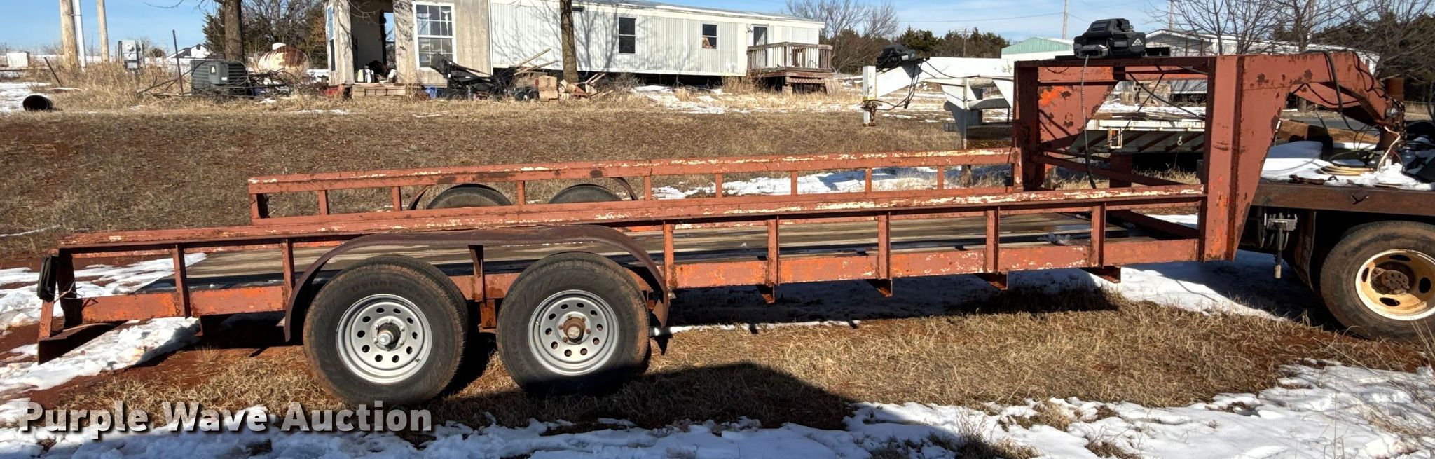 Purple Wave is selling a used Flat or Drop Deck Trailer in Oklahoma. This item is a Shop Built flatbed trailer with the following: Overall, Length: 274', Width: 95", Deck, Length: 20', Width: 77"