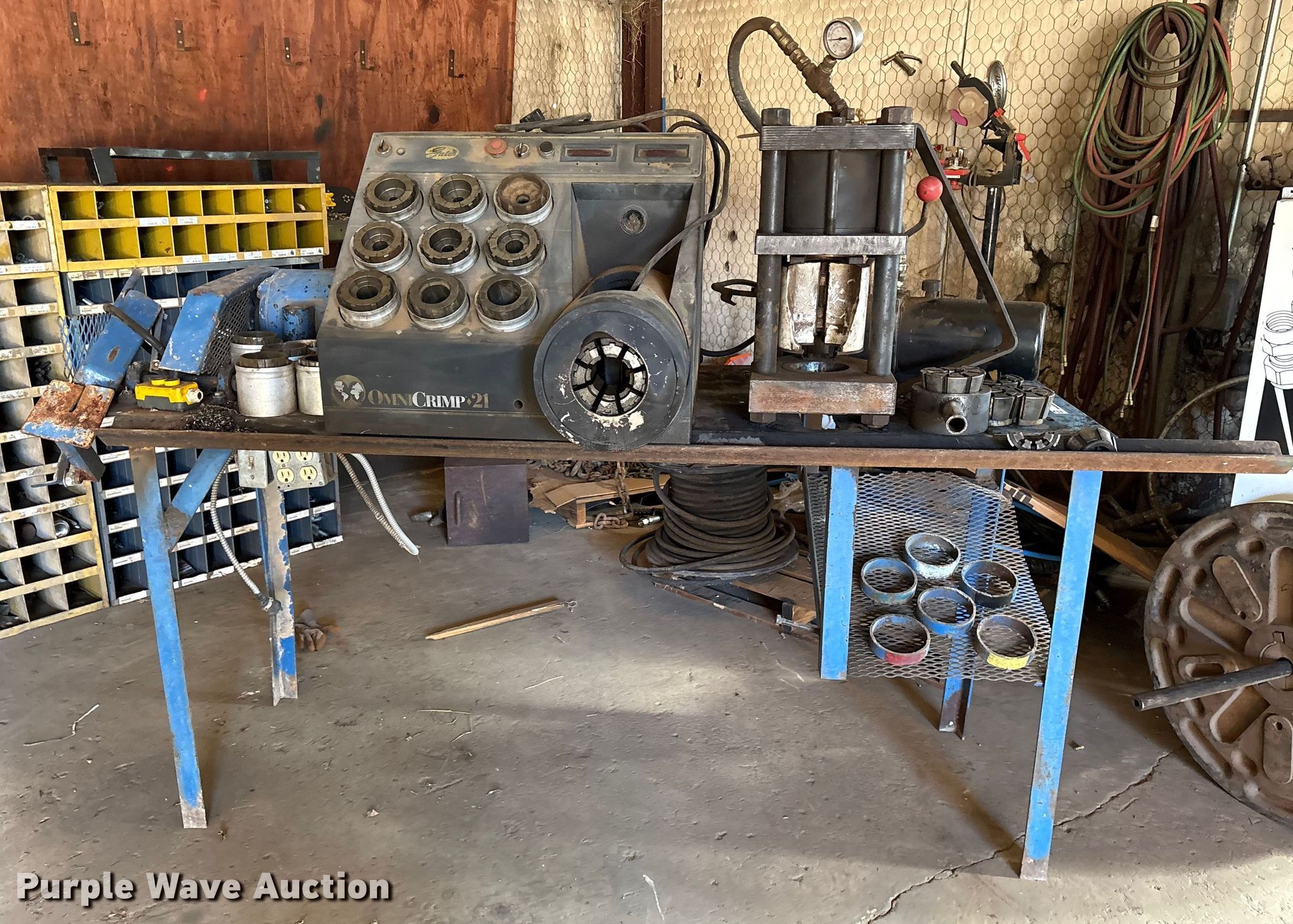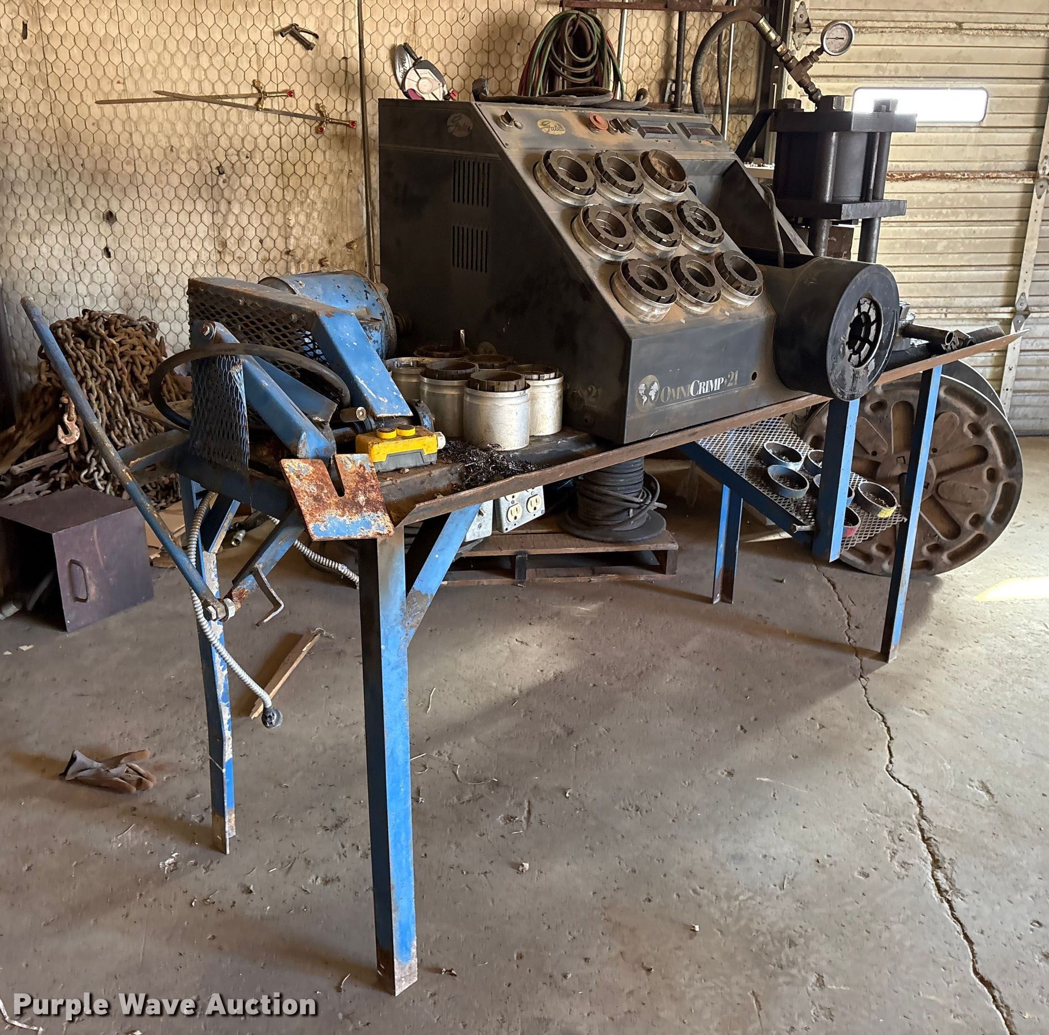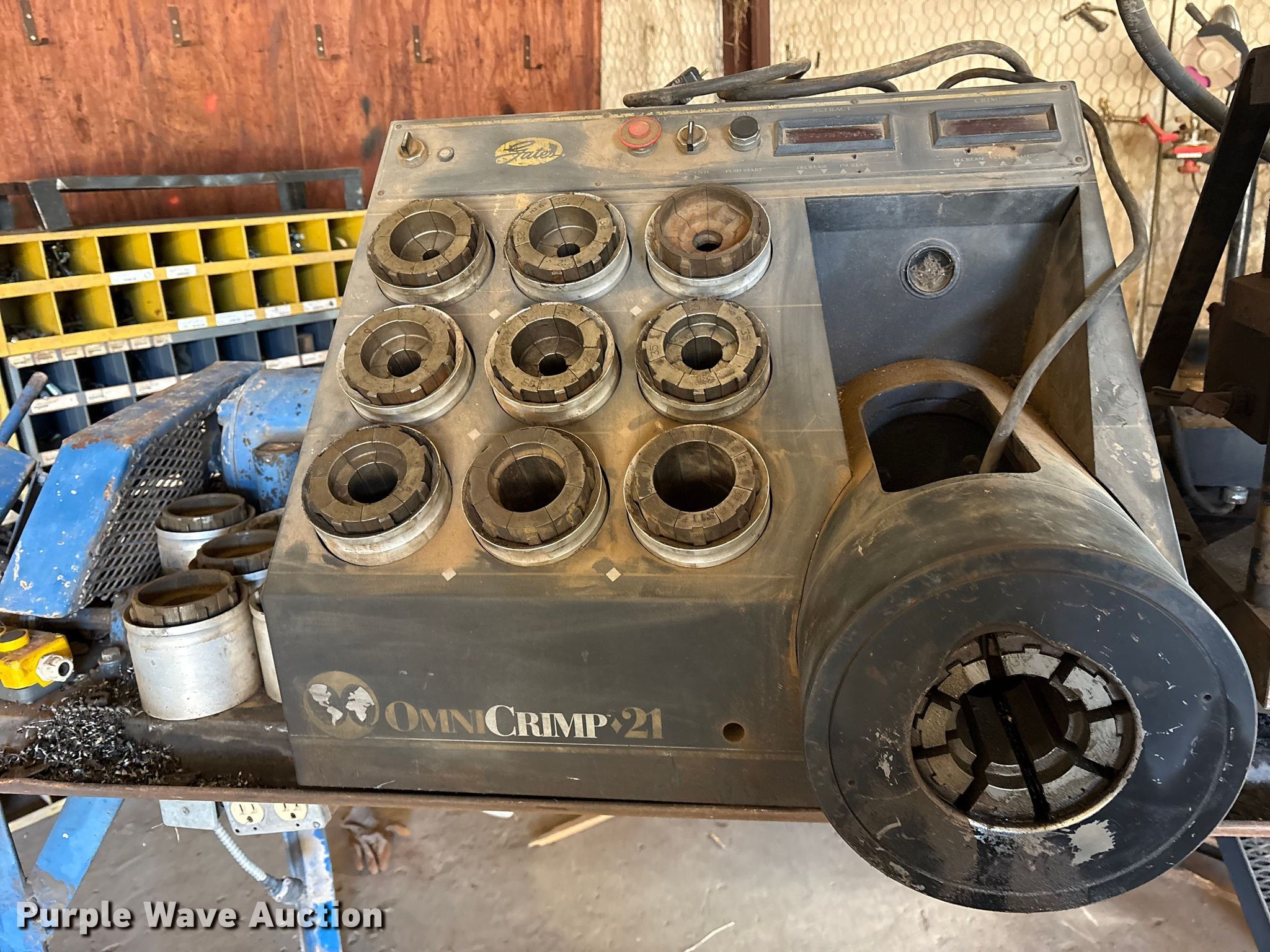 Purple Wave is selling a used Tools in Texas. This item is a Gates OmniCrimp 21 hydraulic hose crimp machine with the following: Phase: Single