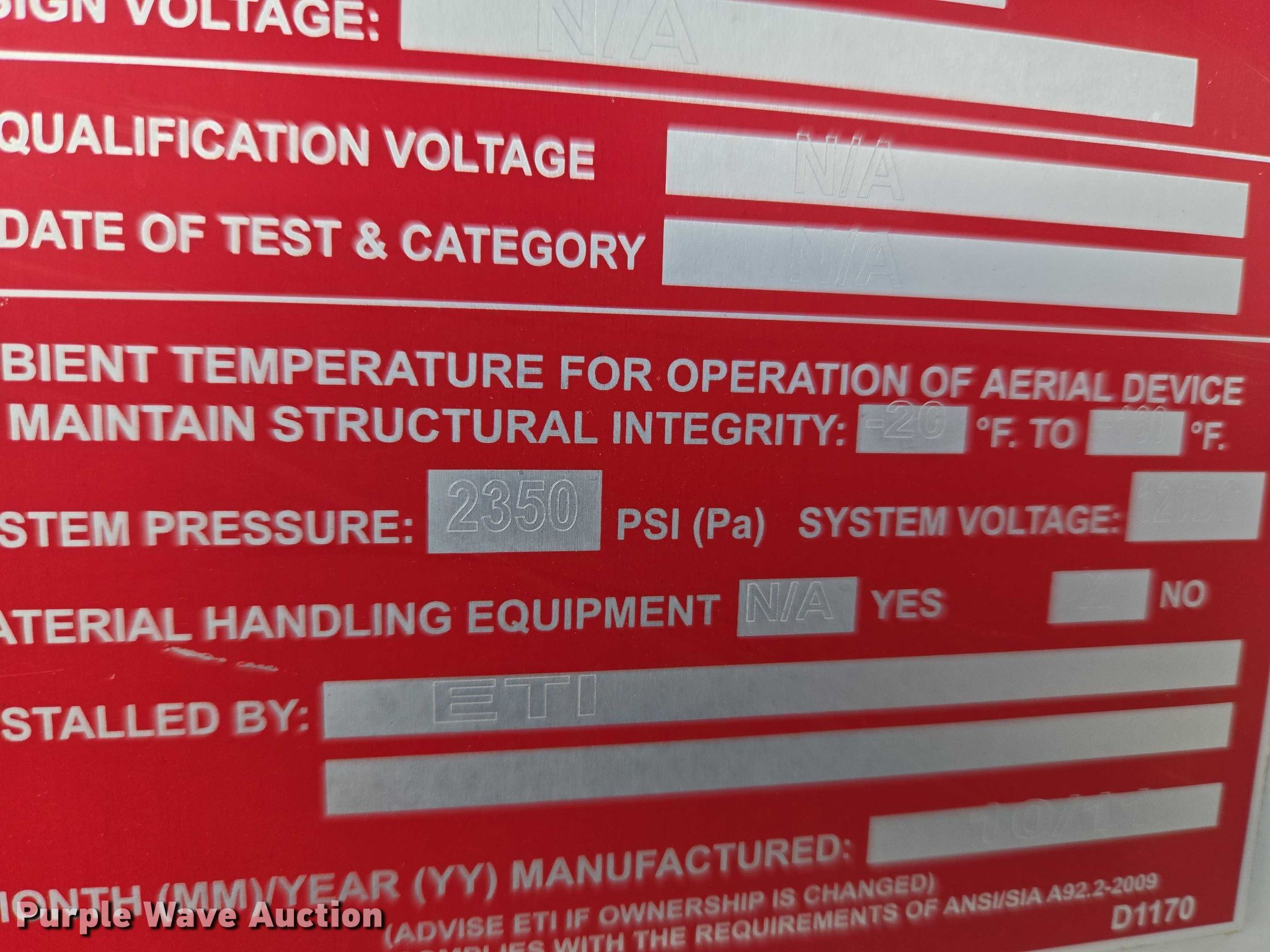 2012 Ford F550 Super Duty XL bucket truck. Miles: 120,471 on odometer, VIN: 1FDUF5GY4CEA14253. Engine Ford, Displacement: 6.8L, Cylinders: 10. Transmission Automatic. Chassis Axles: Single, Suspension: Spring, Brakes: Hydraulic, GVWR: 18,000 lbs. Interior AC, Heat, Heated mirrors, Power windows, Power locks, Cruise control, Backup camera, Auxiliary controls. Features Bed Utility bed, ETI SB100DD94B38N, Serial: 14208, Length: 14' 2", Width: 7' 10", Boom ETI ETC35SNT, Serial: 0811C58812, Mast height: 35', Maximum lift capacity: 350 lbs, Maximum lift height: 35', Boom type: Telescopic, Man basket, Boom controls Ground, Platform/ basket.. Tires Size: 225/70R19.5. Oklahoma title. Seller is an Oklahoma licensed motor vehicle dealer. Buyers may be required to provide identification to the licensed dealer to comply with state laws. Title will be assigned and distributed by the dealer. Please contact the seller for distribution questions. Title distribution may be delayed up to 14 days from verification of funds. FWAuto Remarketing LLC. Yukon, OK 73099