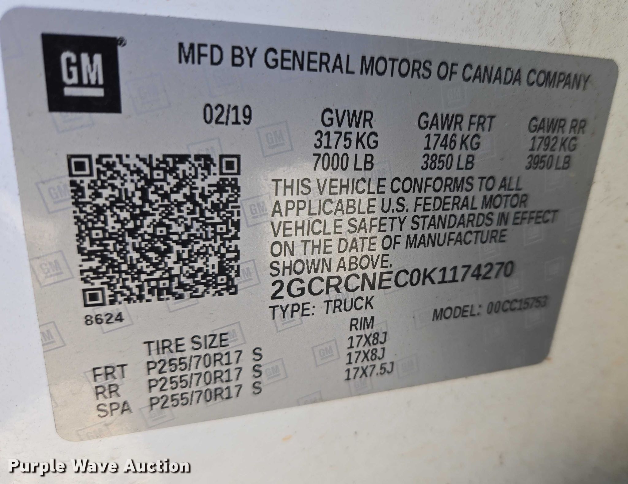 - VIN: 2GCRCNEC0K1174270