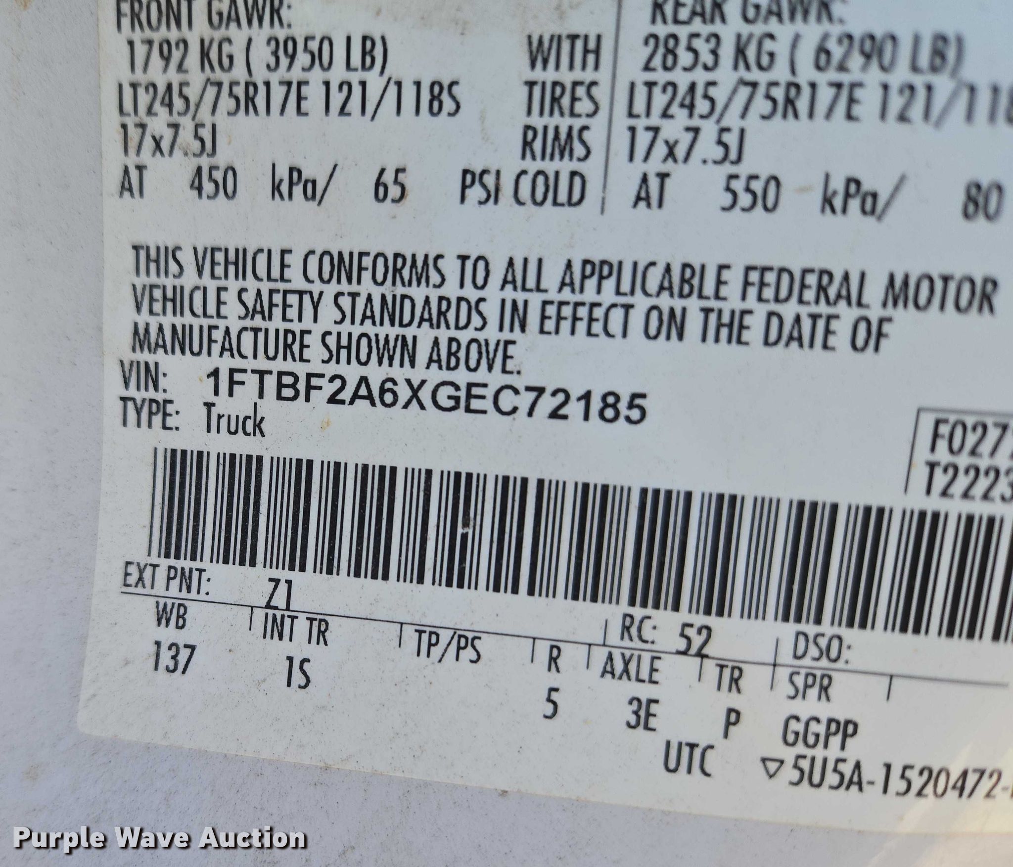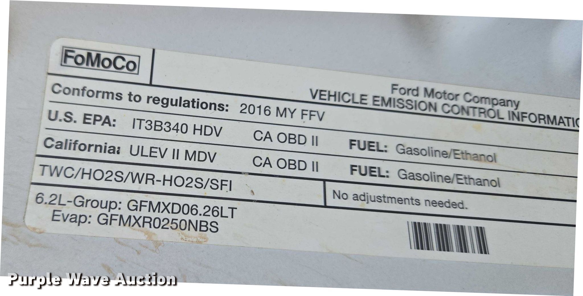 2016 Ford F250 Super Duty pickup truck. Miles: 248,932 on odometer, VIN: 1FTBF2A6XGEC72185. Engine Displacement: 6.2L, Cylinders: 8, Fuel type: Gas. Transmission Automatic. Interior AC, Heat, Heated mirrors, Power windows, Power locks, Cruise control, Backup camera, Brake controller. Tires Size: LT245/75R17. Notes Windshield chipped or cracked, Jump start required during on-site data collection. Oklahoma title. Title distribution may be delayed up to 14 days from verification of funds. 3700 S Broadway. Edmond, OK 73013