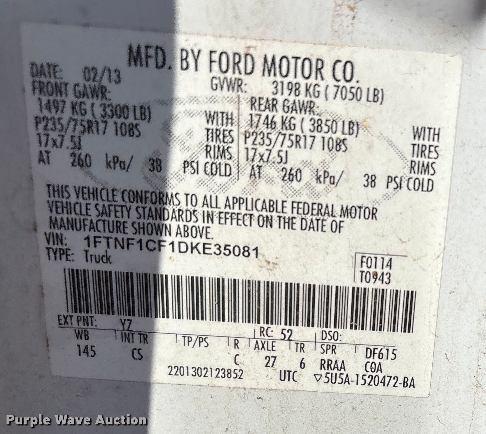 Purple Wave is selling a used 1/2 Ton Pickup or Van in Oklahoma. This item is a 2013 Ford F150 XL pickup truck with the following: Miles: 262,073 on odometer, VIN: 1FTNF1CF1DKE35081