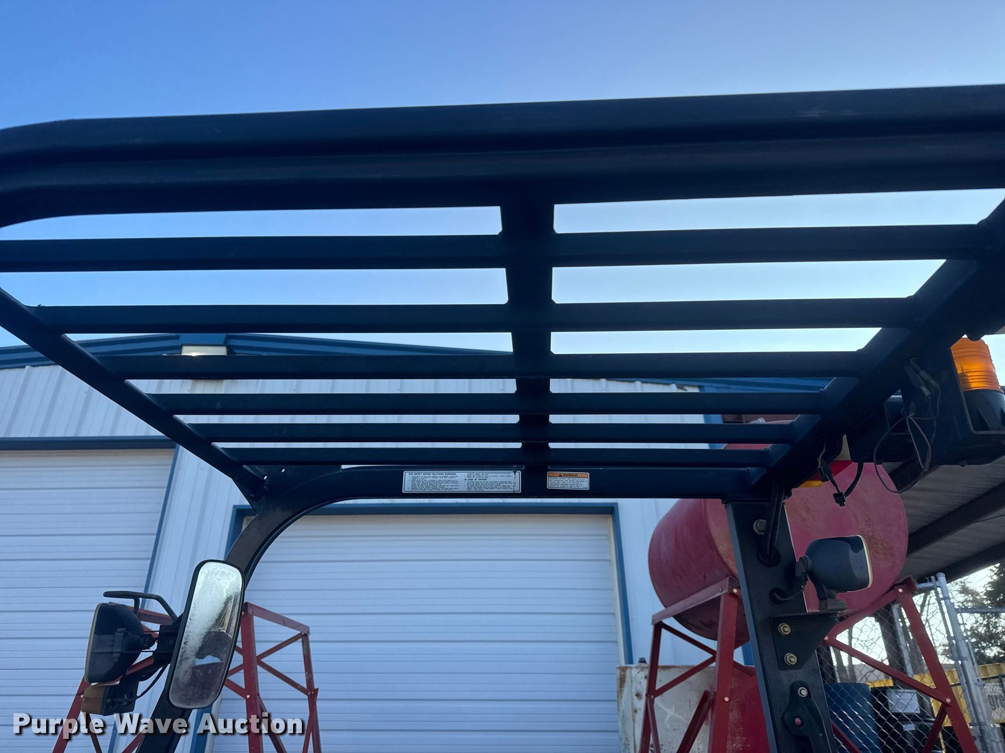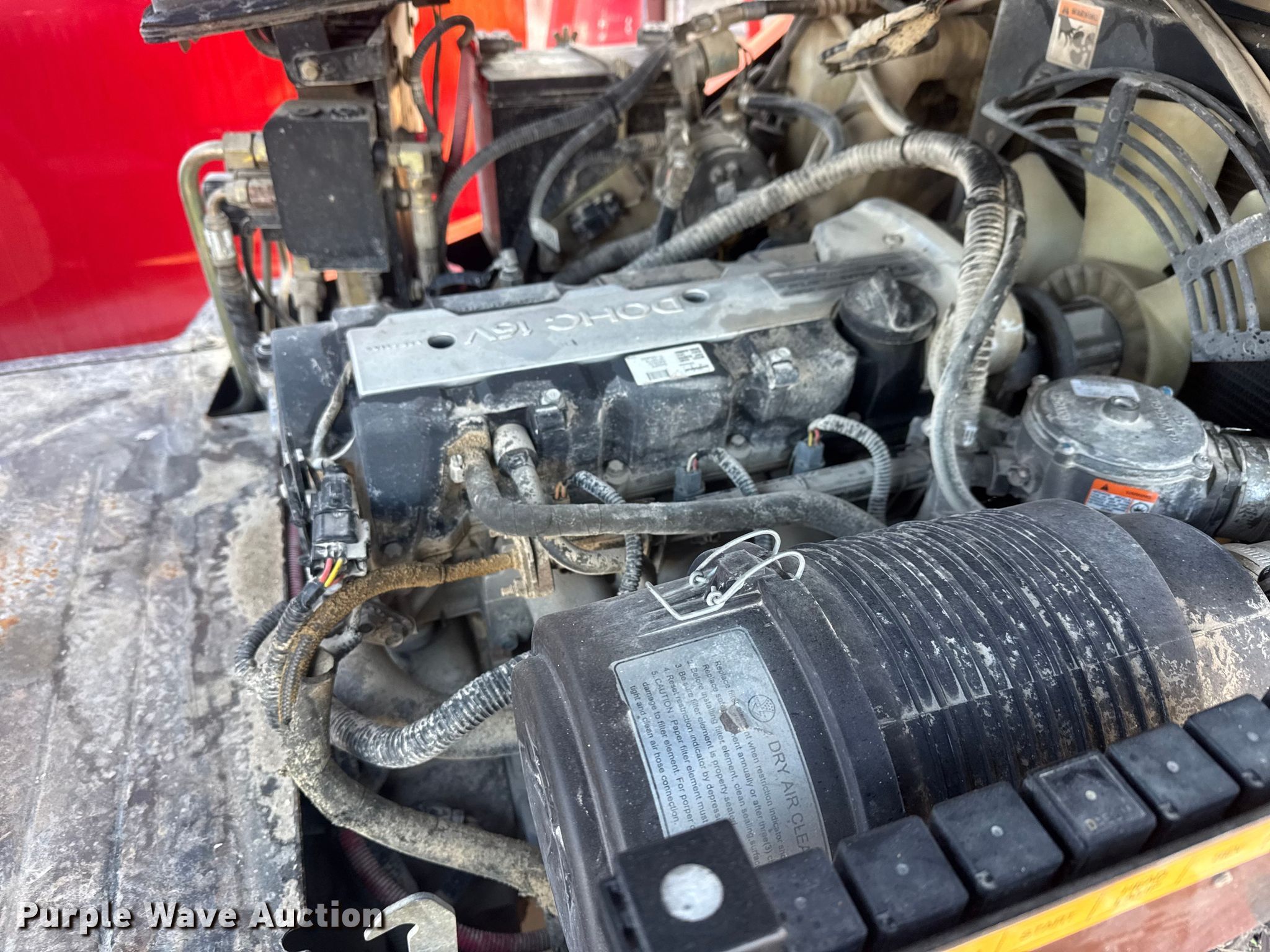 Doosan G25E-5 forklift. Hours: 4,569 on meter, Serial: MD-00691. Engine Woodward, Displacement: 2.0L, Cylinders: 4, Fuel type: Gas, LPG, Dual fuel. Transmission Powershift, 1F - 1R. Operators station OROPS, Canopy. Features Maximum lift capacity: 4,600 lbs, Maximum lift height: 186", Collapsed mast height: 84", Mast stages: 3, Side shift, Mast tilt, Fork length: 42". Tires Front: 7.00-15, Rear: 6.50-10, Solid. Notes Timing belt damaged, broken, Non-operational unit. Fleet Fuels LLC. El Dorado, KS 67042