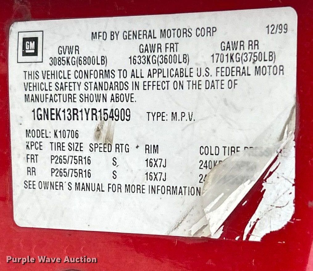 - VIN: 1GNEK13R1YR154909