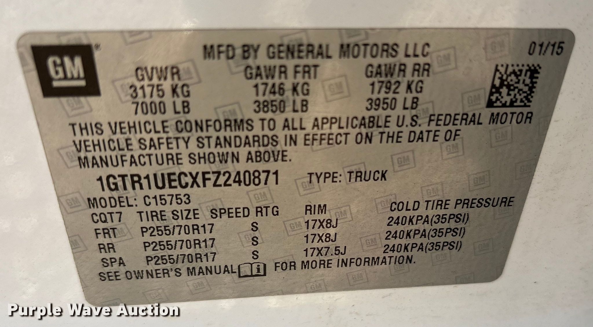 - VIN: 1GTR1UECXFZ240871