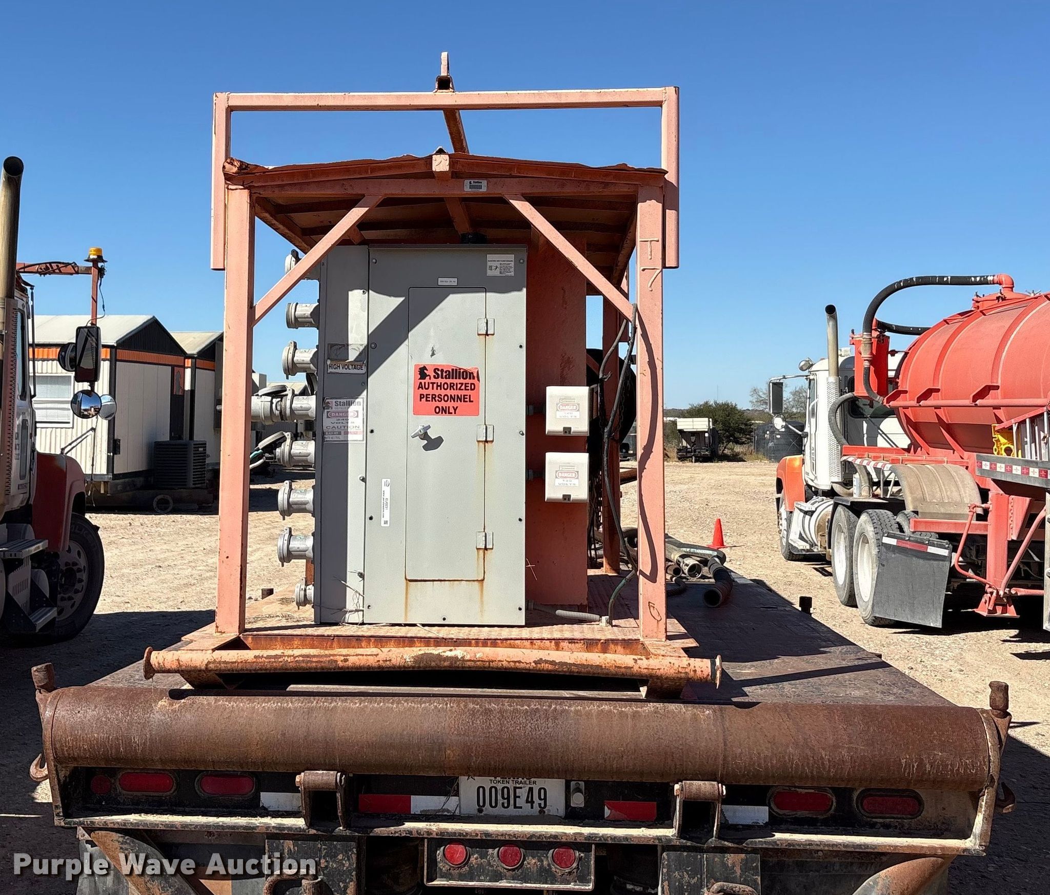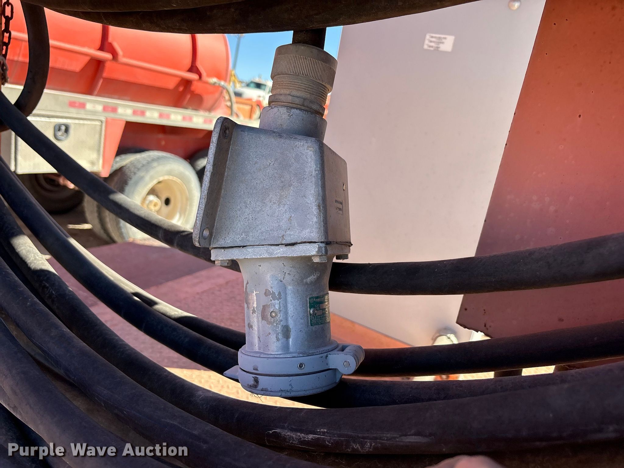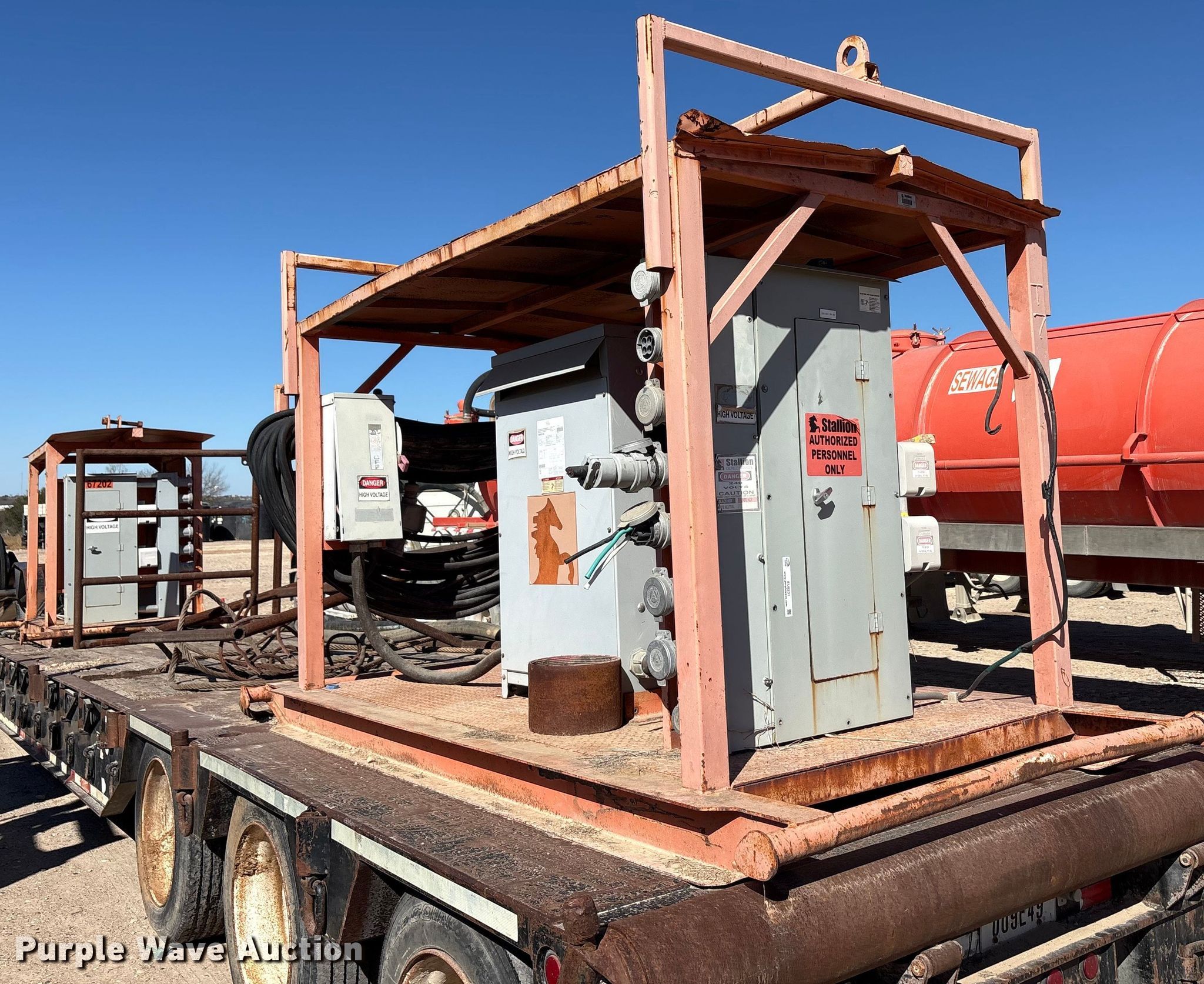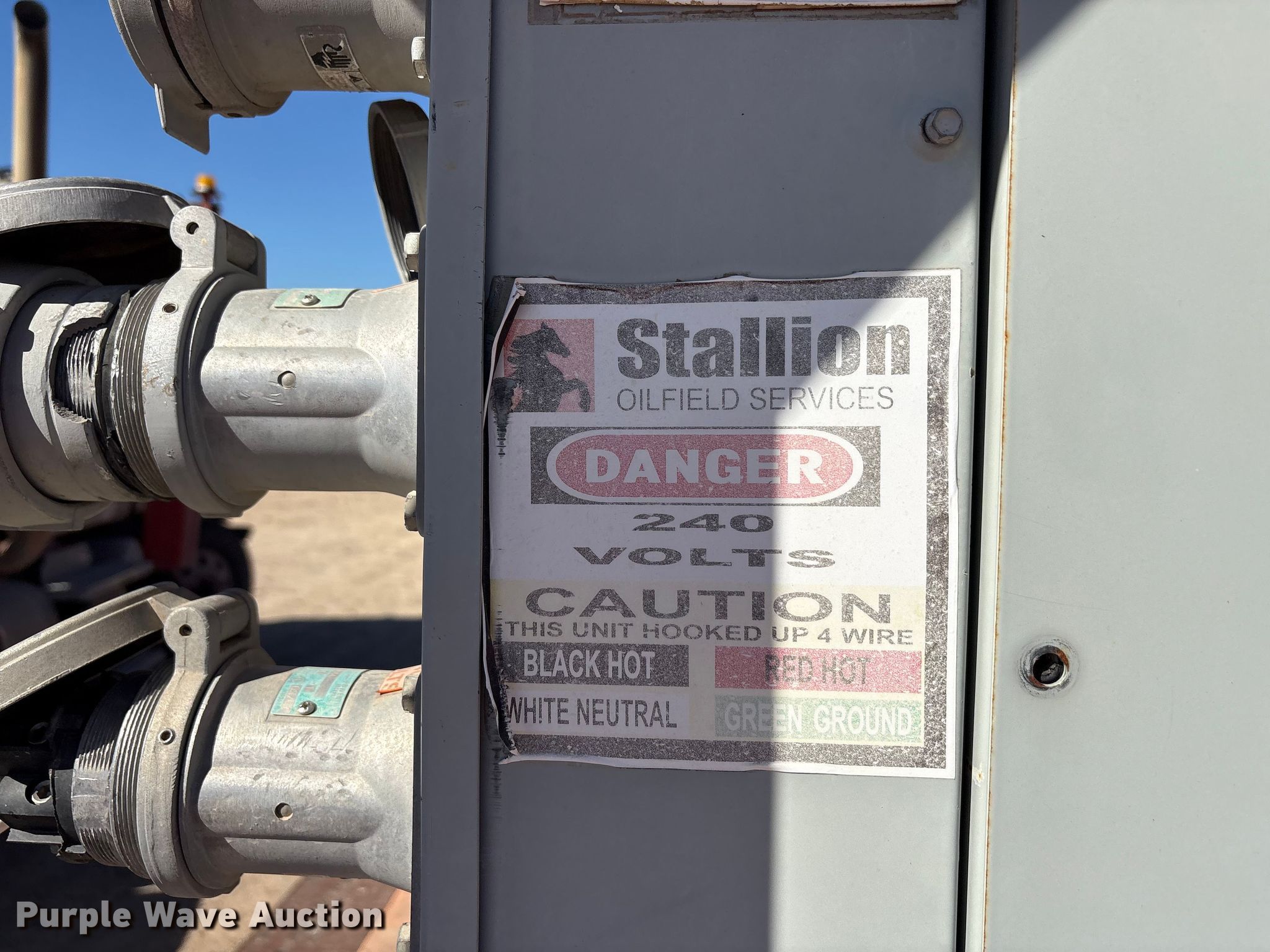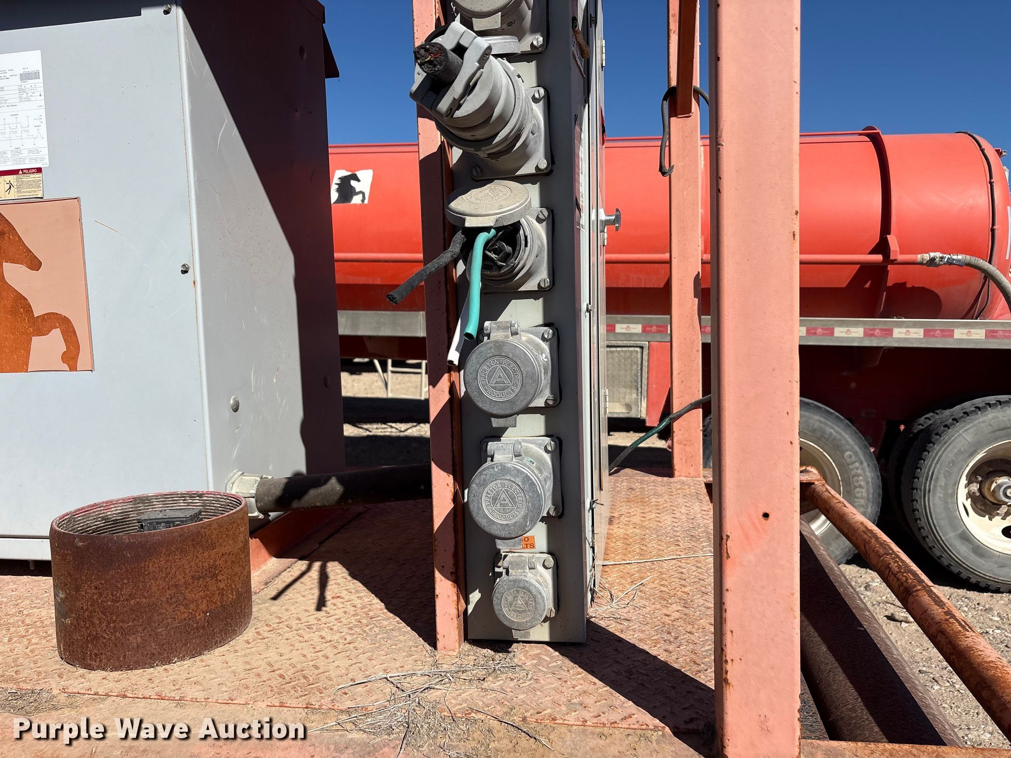 2014 Eaton transformer. Serial: J14A00670, Unit #: 90607. Features Phase: Three, Delta Primary Volts: 480, Secondary Volts: 208/130, Kva: 122.5, Class AA, Hz: 60, Breaker box, (8) 240V outlets, (4) 120V outlets, Skid mounted, 123" L x 63" W. Notes Trailer not included. Stallion Infrastructure Services. Carrizo Springs, TX 78834