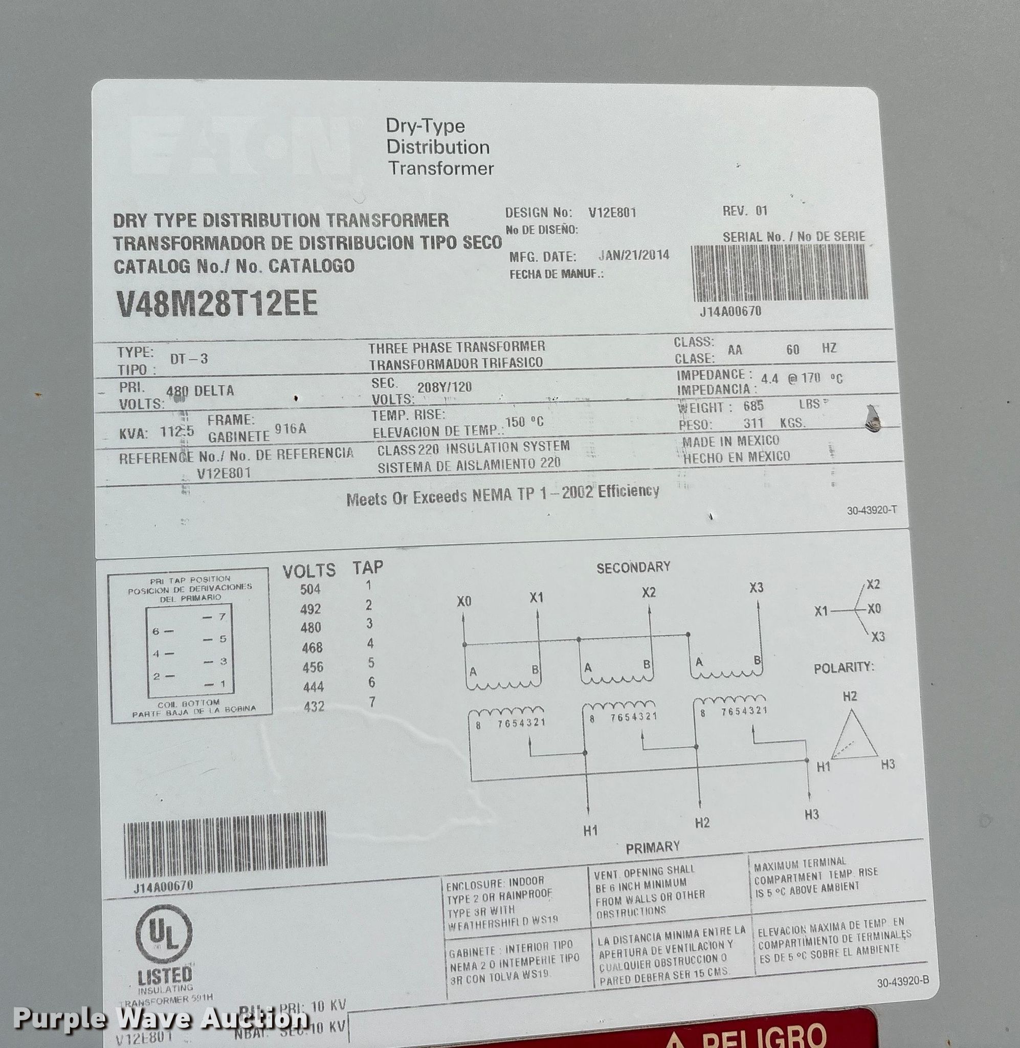This 2014 Eaton transformer will sell to the highest bidder regardless of price.