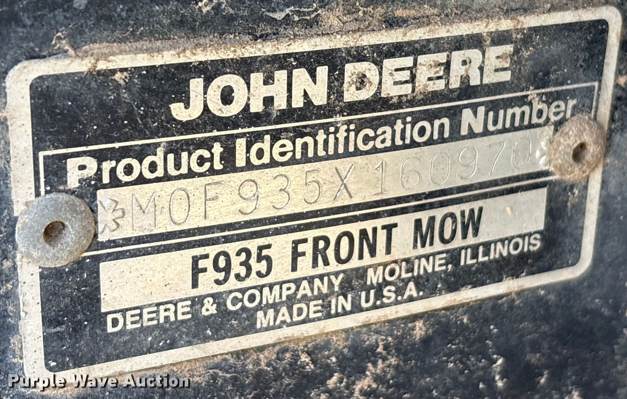 Purple Wave is selling a used Commercial Turf Mower in Oklahoma. This item is a John Deere F935 lawn mower with the following: Hours: Unknown, Cutting width: 72", Serial: M0F935X160970