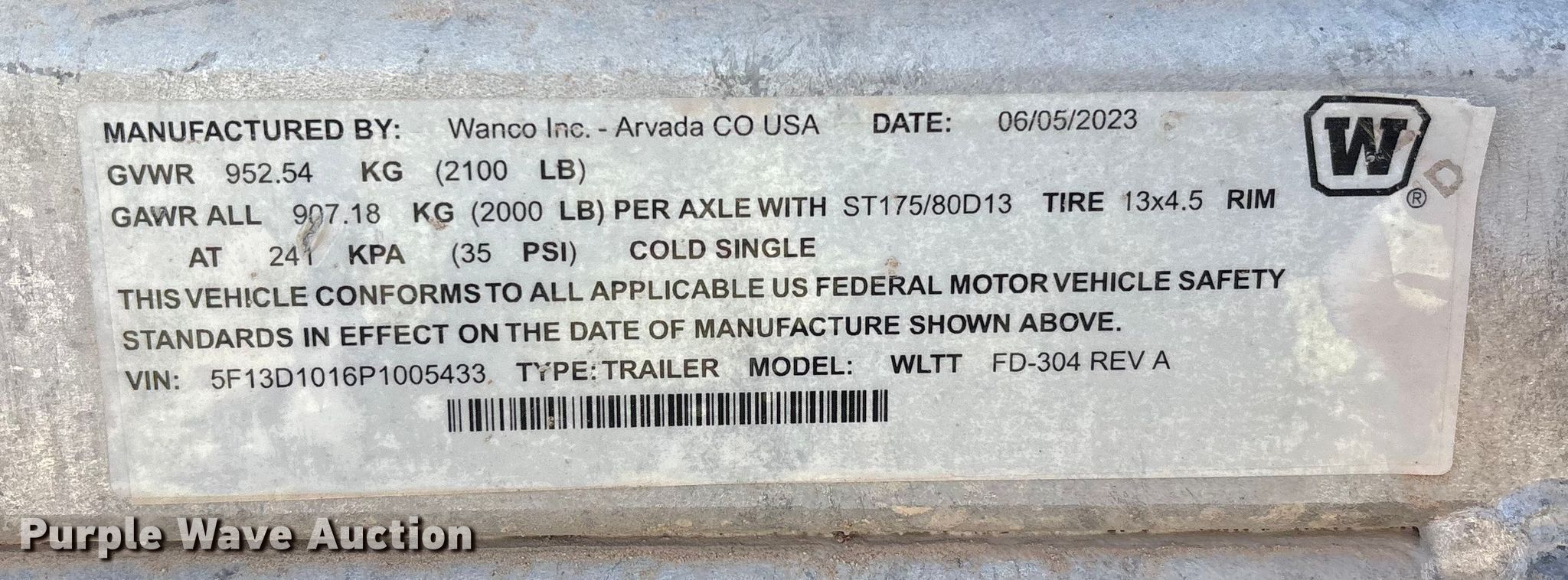 2022 Wanco INC WTLL light plant. Hours: Unknown, VIN: 5F13D1016P1005433, Unit #: 102501. Engine Cylinders: 3, Fuel type: Diesel. Features Generator Phase: Single, Light plant Bulbs: 4, Watts: 350, Hoist: Manual. Trailer Ball hitch size: 2", Suspension: Spring, Axles: Single, Tire size: ST175/80R13, GVWR: 2,100 lbs, GAWR: 2,000 lbs. Notes Non-operational hour meter, Engine issues, cranks but does not start , Stabilizers missing, Hitch issues, bent, Unknown operating condition. This is worksite support equipment and will not come with a title. Transfer of ownership documentation will be a bill of sale. Stallion Infrastructure Services. Hobbs, NM 88240