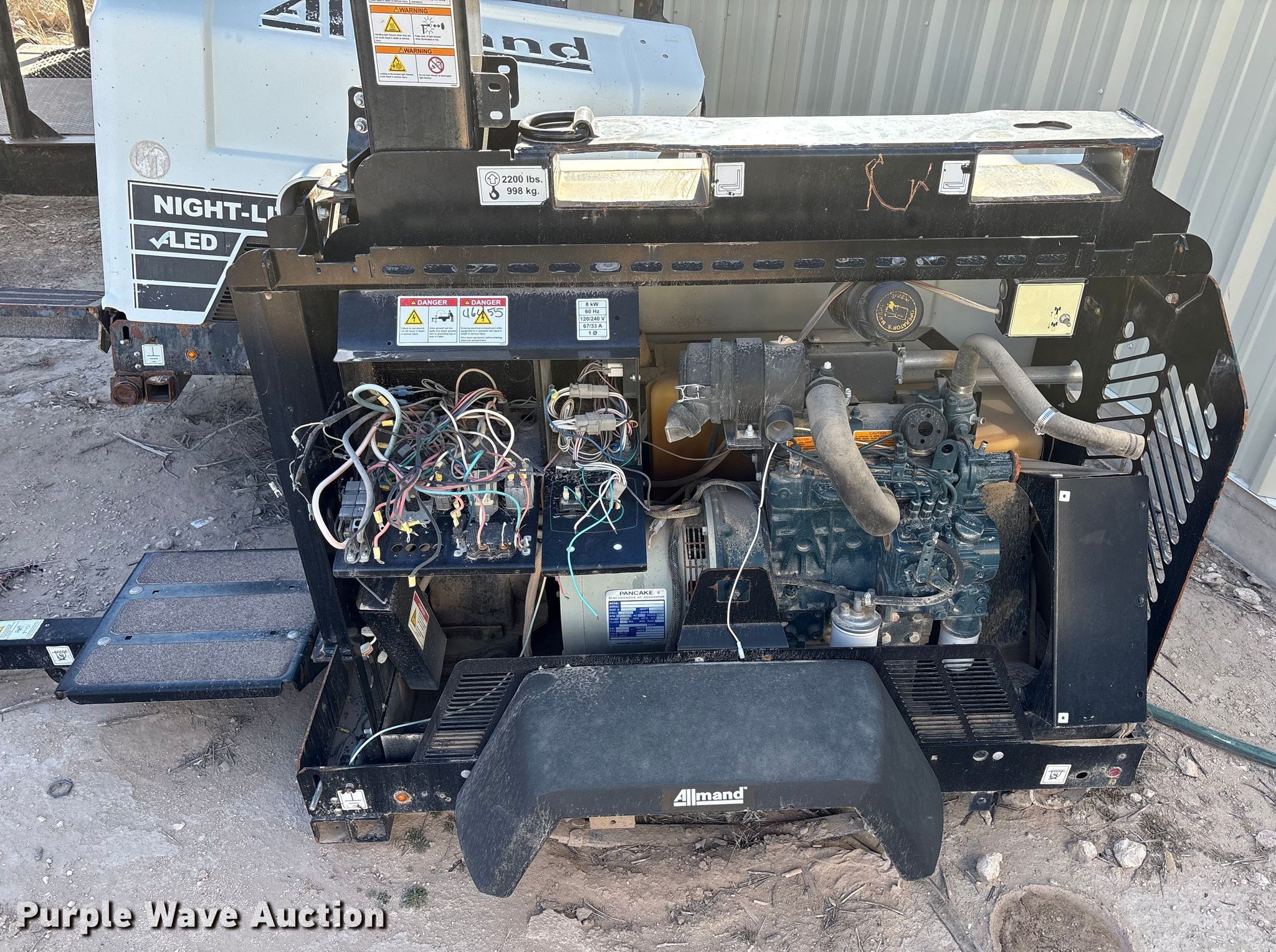 2018 Allmand Bros INC. Night Light Pro 2 V light plant. Hours: 4,673 on meter, VIN: 5AEA1AA11JH000895, Unit #: 46455. Engine Kubota D1105, Displacement: 1.1L, Cylinders: 3, Fuel type: Diesel. Features Generator Pancake 201CSA5420, kW: 8, Light plant Hoist: Power. Trailer Ball hitch size: 2", Suspension: Spring, GVWR: 2,200 lbs. Notes Unit partially disassembled, Parts missing, Lights missing, Stabilizer missing, Axle missing, Non-operational unit. This is worksite support equipment and will not come with a title. Transfer of ownership documentation will be a bill of sale. Stallion Infrastructure Services. Hobbs, NM 88240