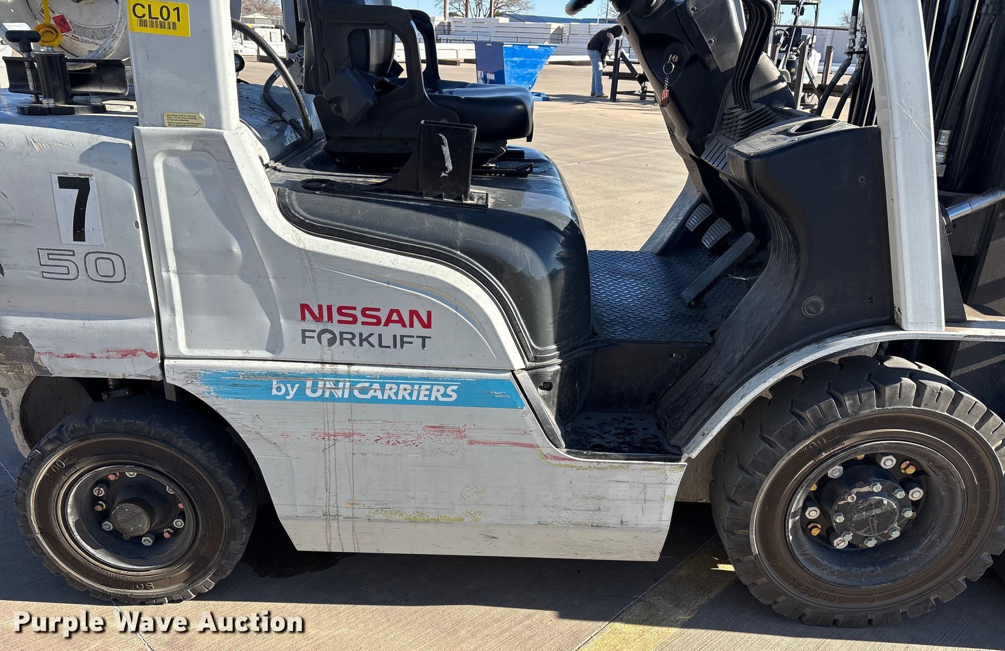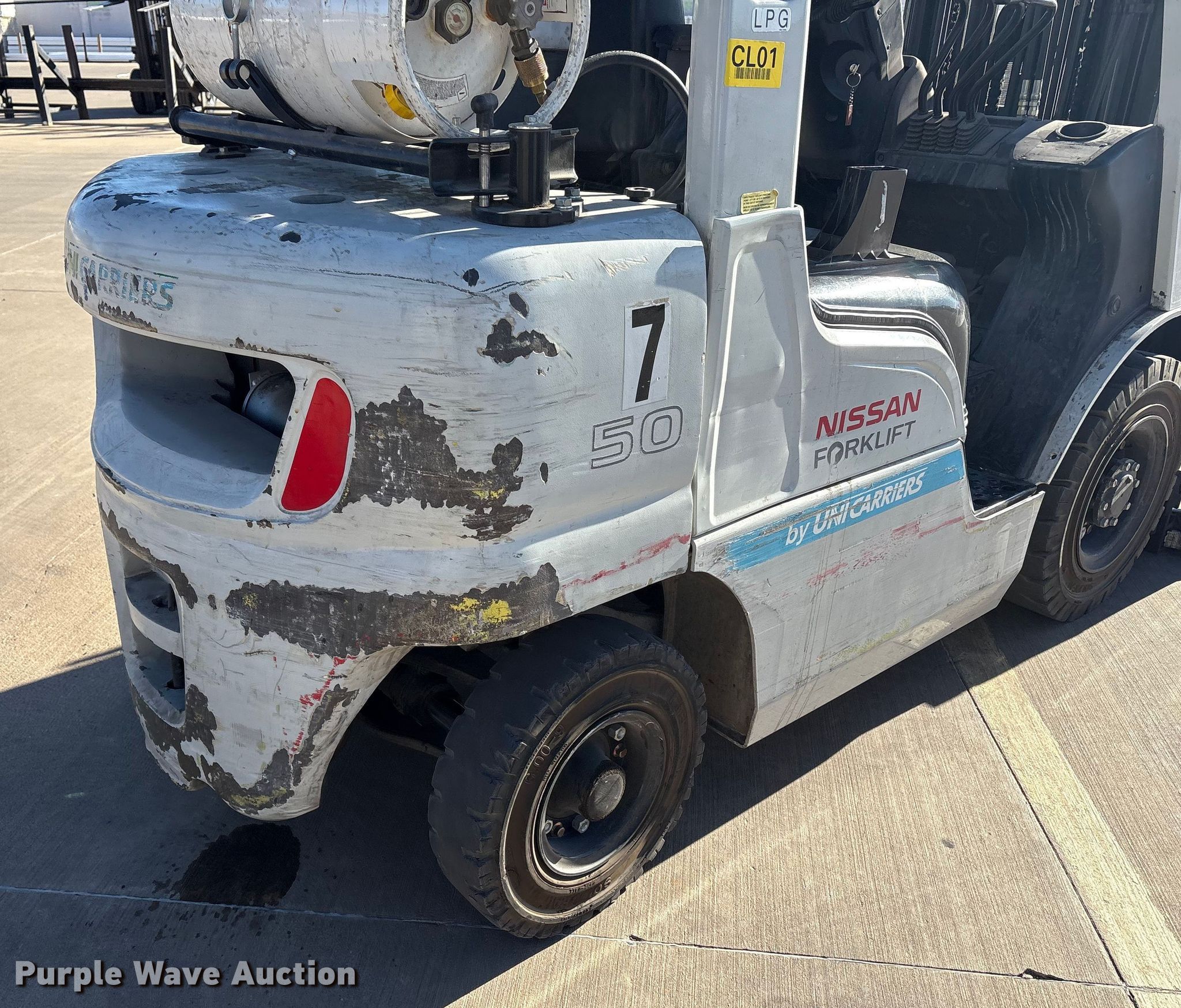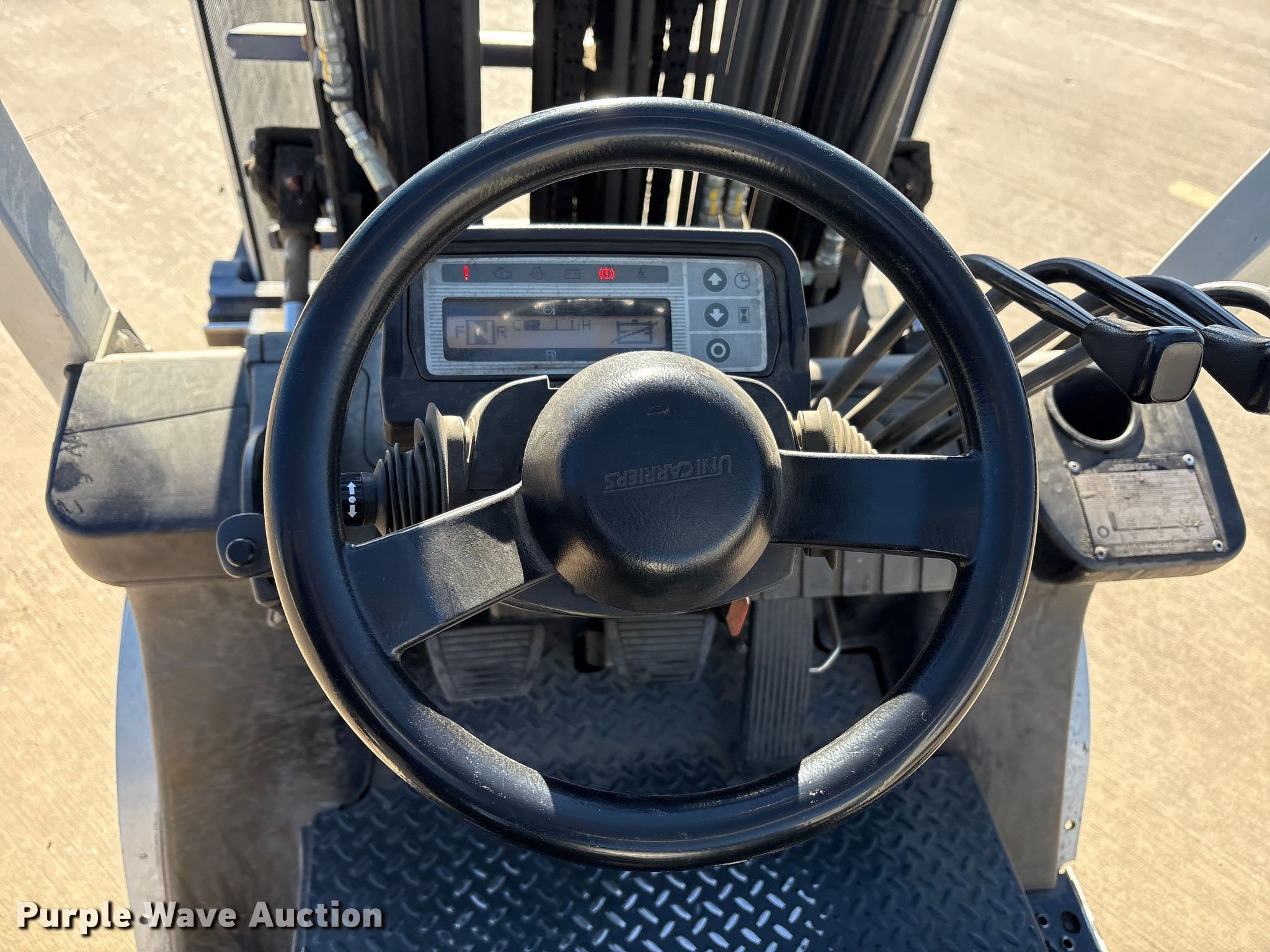 Purple Wave is selling a used Cushion Tire or Pneumatic Forklift in Texas. This item is a 2015 Nissan PF50 forklift with the following: Hours: 4,344 on meter, Miles or hours may vary, unit still in use, Serial: P1F2-9H9946, Unit #: SFS2617