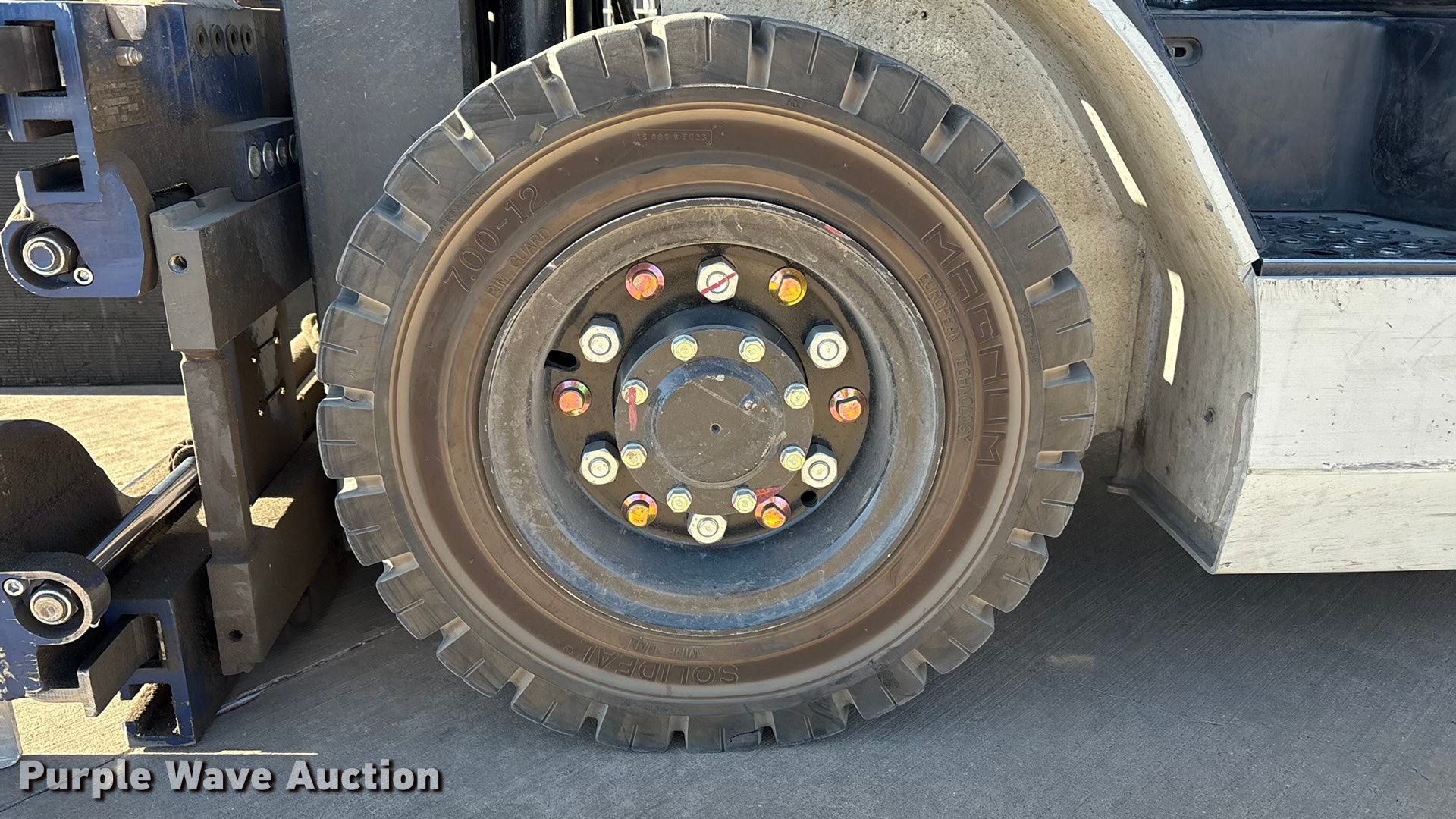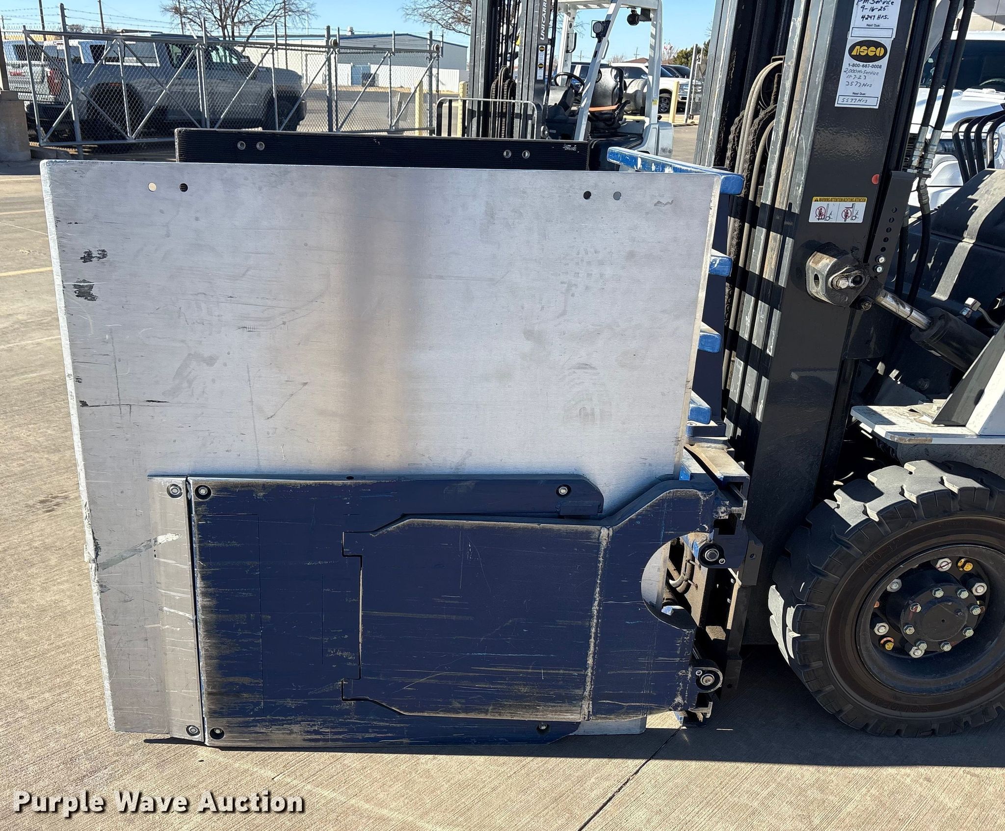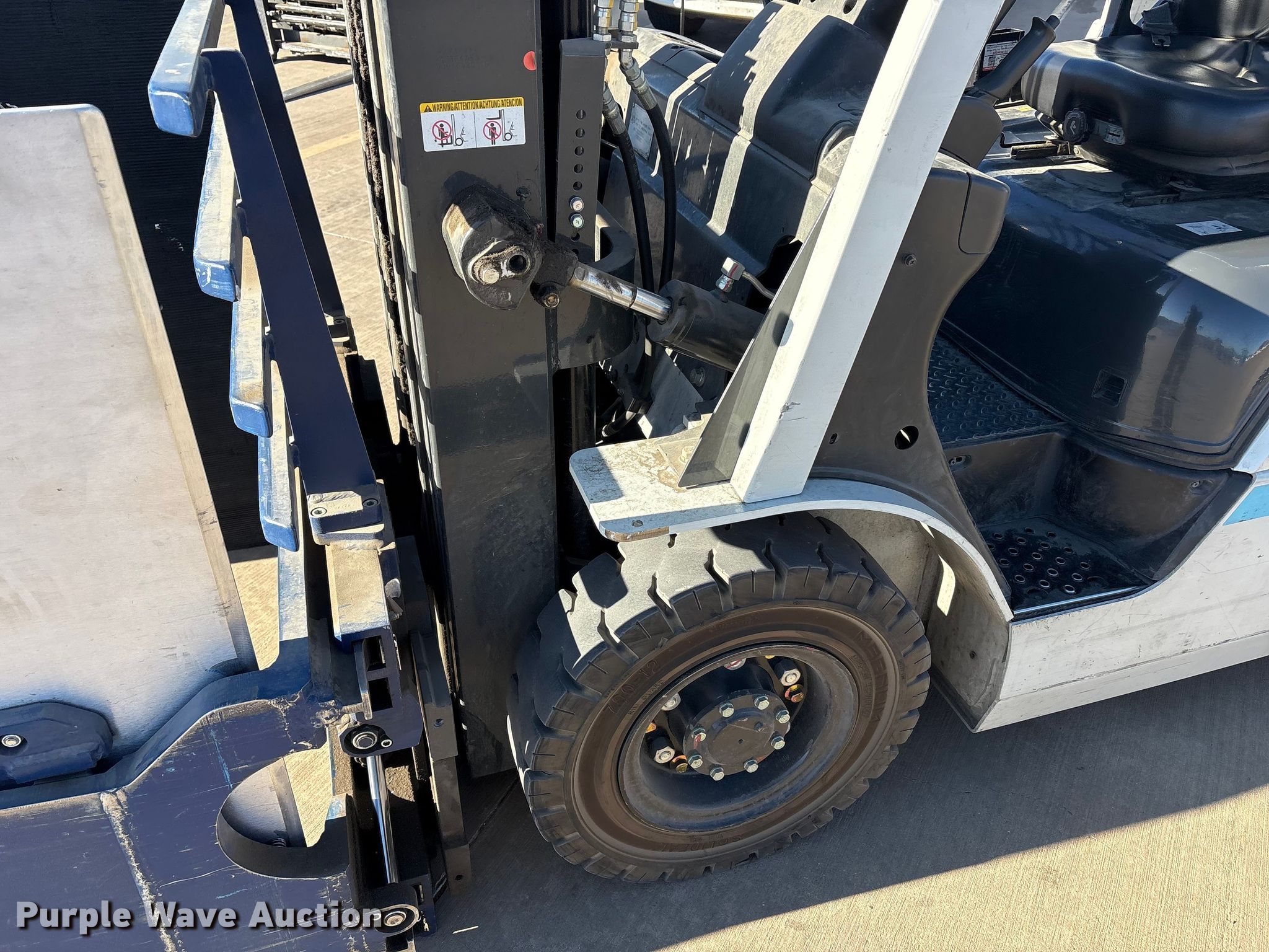 Purple Wave is selling a used Cushion Tire or Pneumatic Forklift in Texas. This item is a 2015 Nissan PF50 forklift with the following: Hours: 4,344 on meter, Miles or hours may vary, unit still in use, Serial: P1F2-9H9946, Unit #: SFS2617