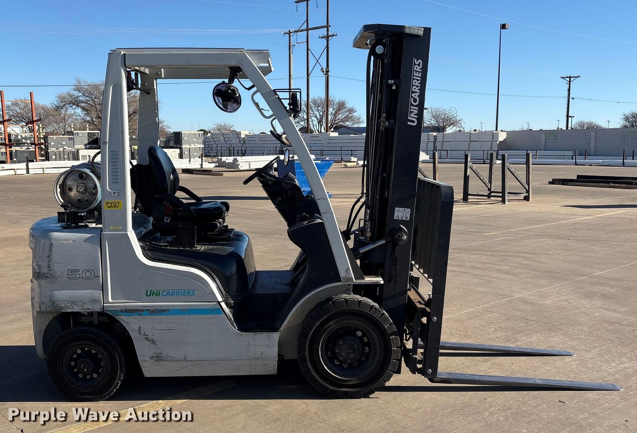 Purple Wave is selling a used Cushion Tire or Pneumatic Forklift in Texas. This item is a 2021 UniCarriers PF50 forklift with the following: Hours: 2,095 on meter, Miles or hours may vary, unit still in use, Serial: P1F2-9H27045, Unit #: SFS1635