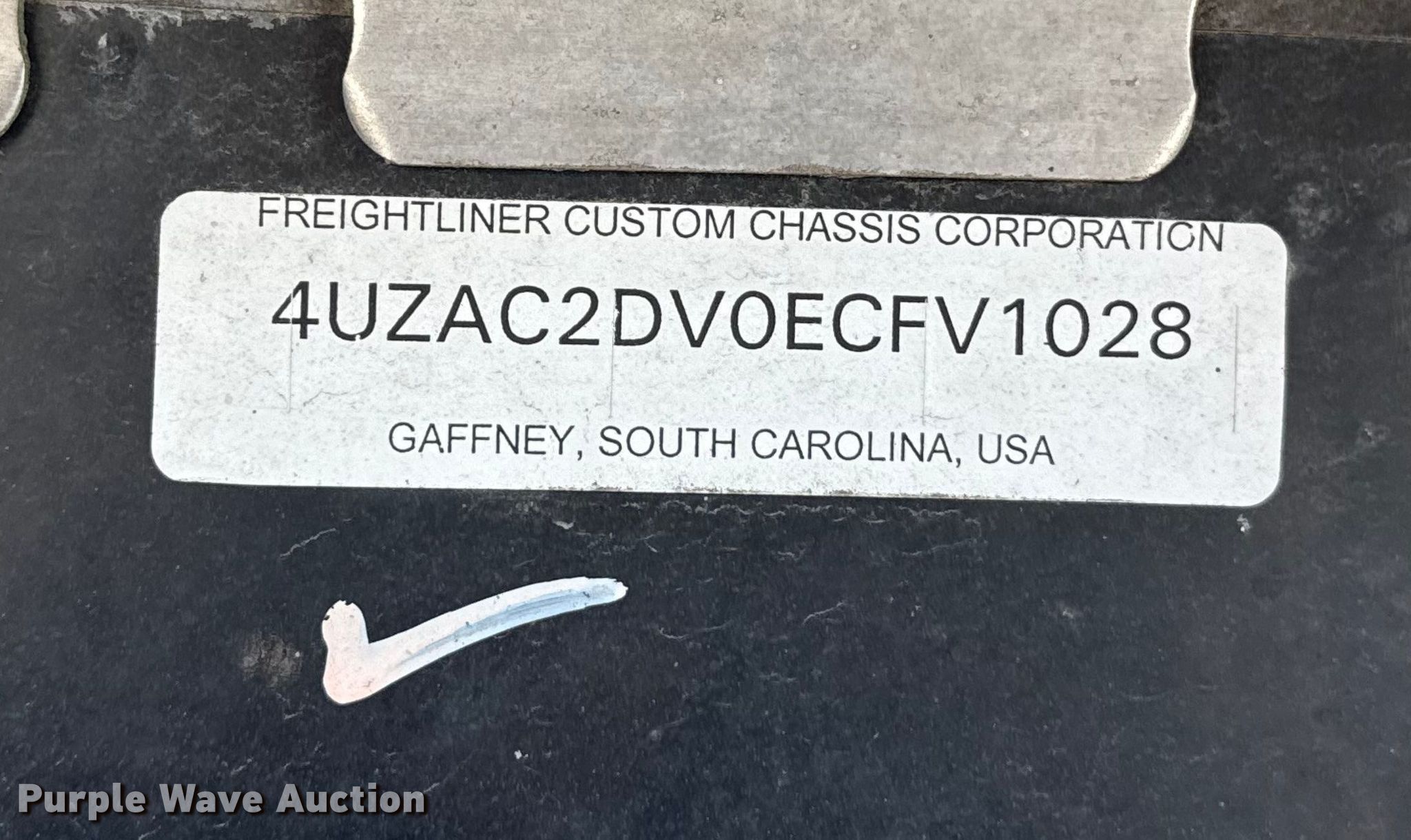 2014 Freightliner MT45 delivery truck. Miles: 210,459 on odometer, VIN: 4UZAC2DV0ECFV1028. Engine Displacement: 6.0L, Cylinders: 8, Fuel type: Gas. Transmission Allison, Automatic. Chassis Axles: Single, Suspension: Spring, Brakes: Hydraulic, GVWR: 19,500 lbs. Interior AC, Heat, Cruise control. Features Bed Length: 18', Width: 93", Height: 100", E-track rail system, Floor: Aluminum. Tires Size: 225/70R19.5, Brand: Good-Year. Notes Dash warning indicator: Check engine, Windshield chipped or cracked, Jump start required during on-site data collection, Engine issues, may need rebuilt Unit must be towed or hauled. Oklahoma title. Title distribution may be delayed up to 30 days from verification of funds. Unifirst Corporation. Oklahoma City, OK 73117