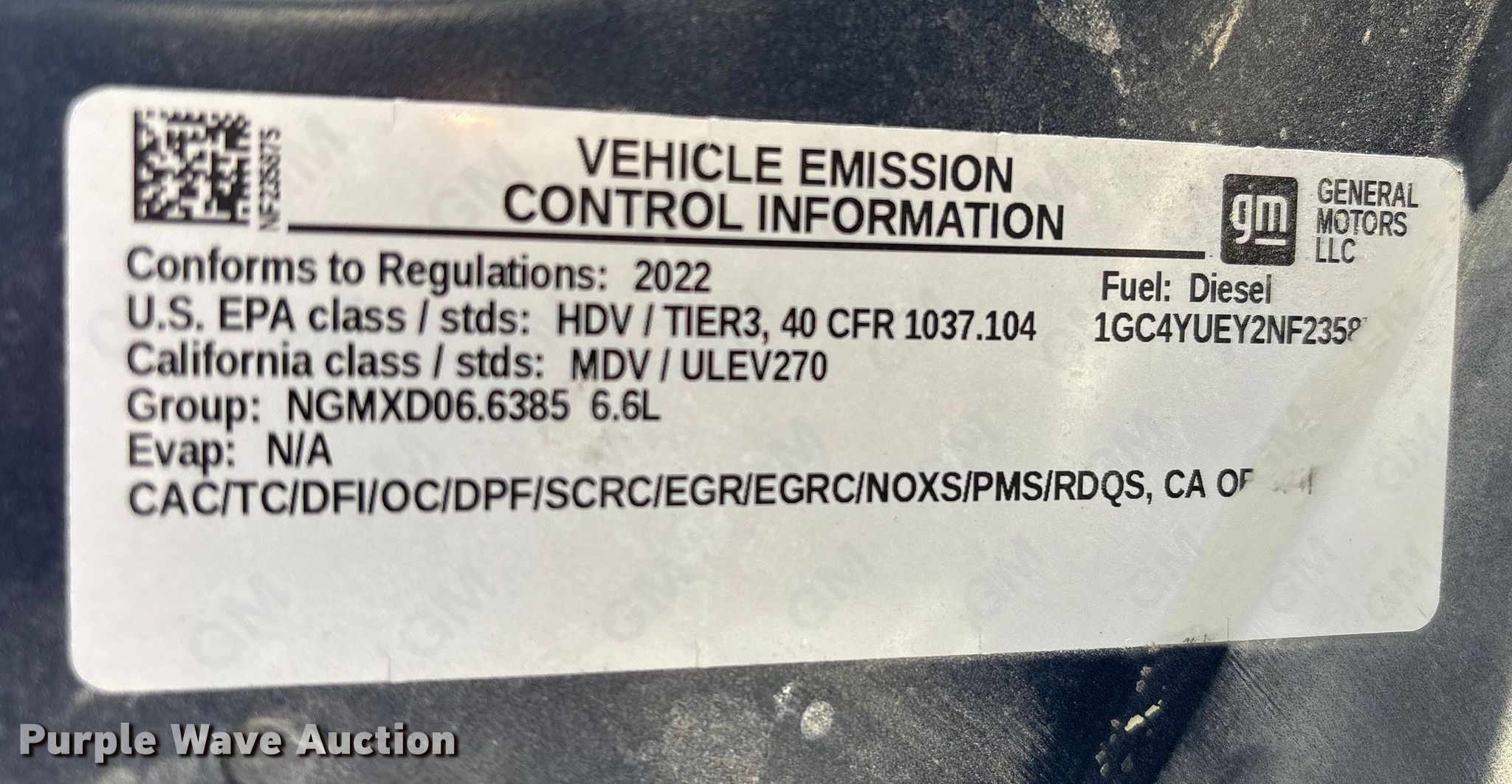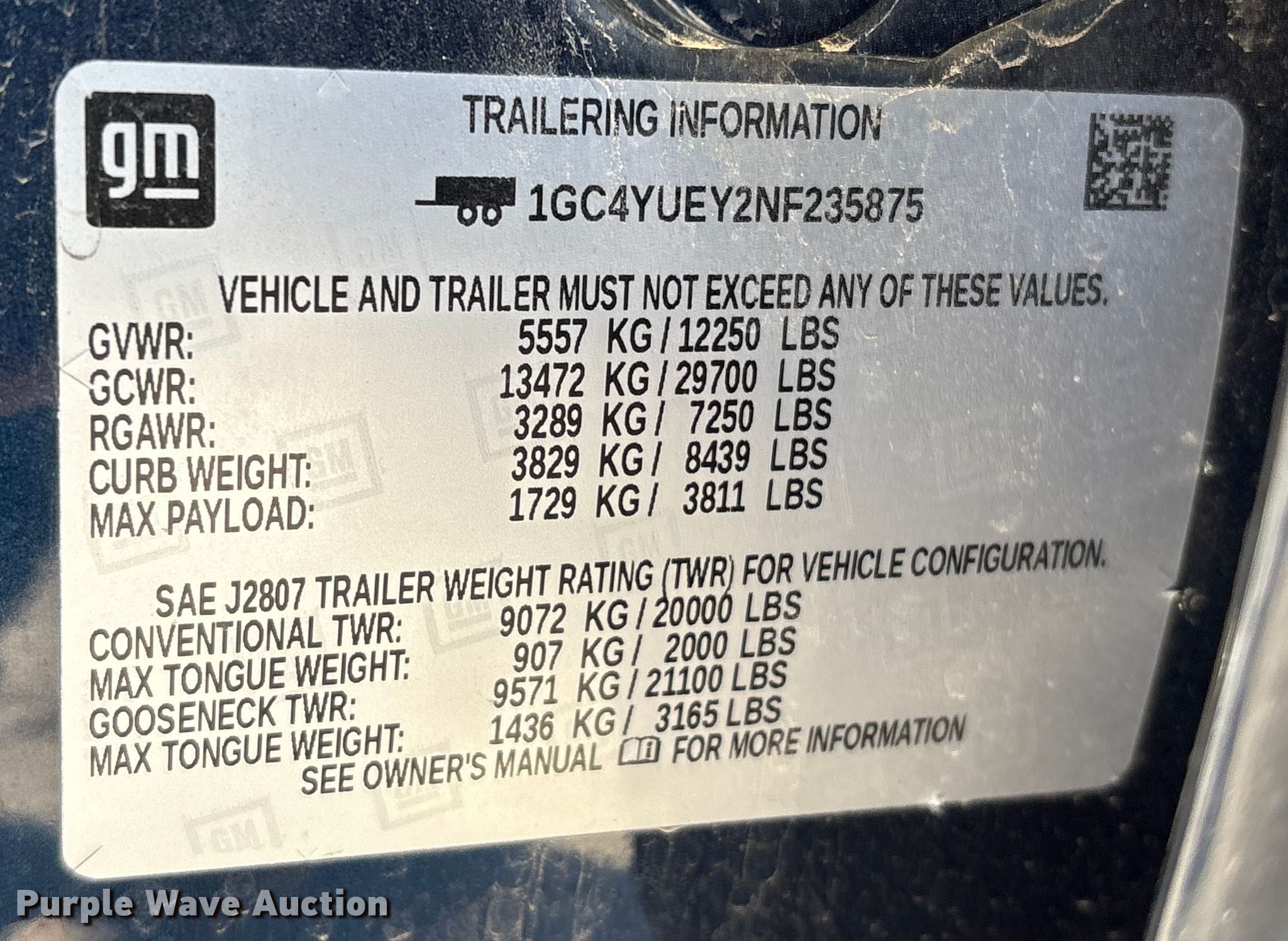 - VIN: 1GC4YUEY2NF235875
