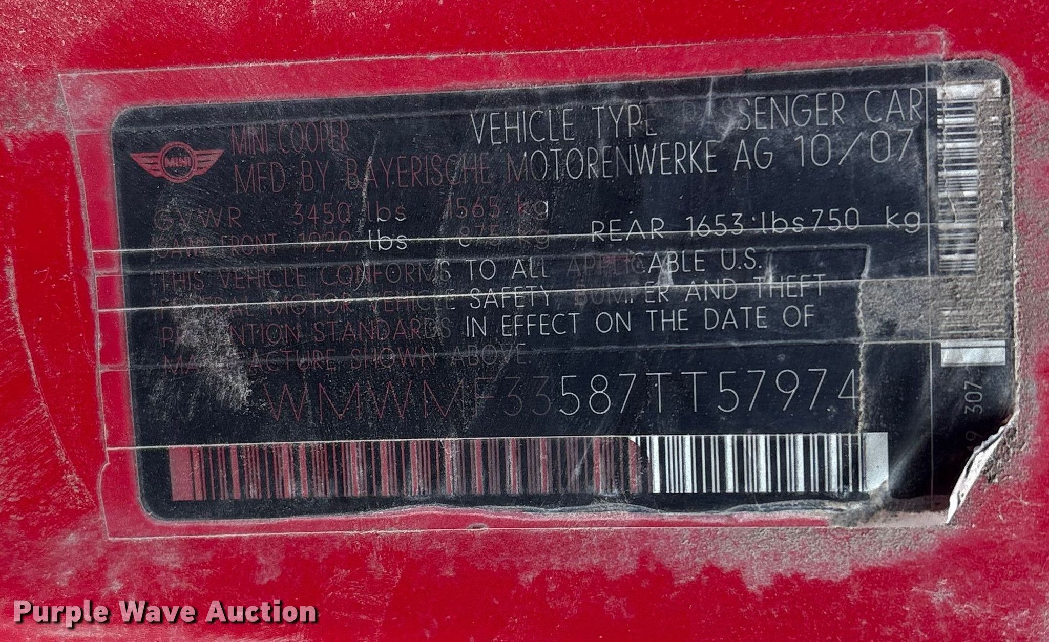 Purple Wave is selling a used Passenger Vehicle in Kansas. This item is a 2007 Mini Cooper with the following: Miles: 79,133 on odometer, VIN: WMWMF33587TT57974