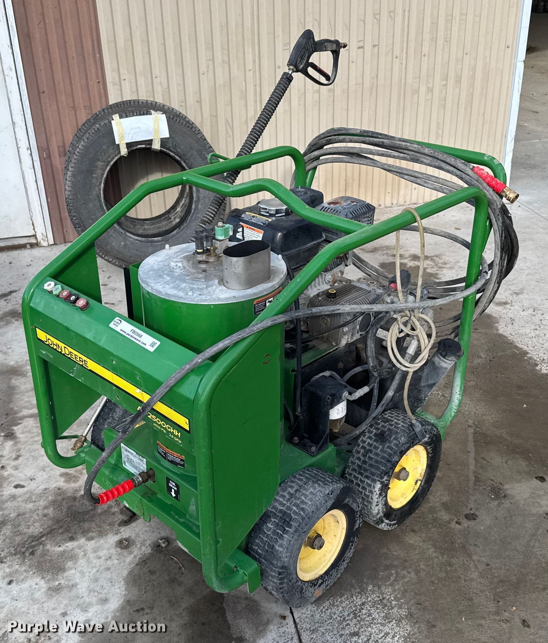 Purple Wave is selling a used Pressure Washer in Kansas. This item is a John Deere AC-2500GHH hot pressure washer with the following: Serial: 15091077