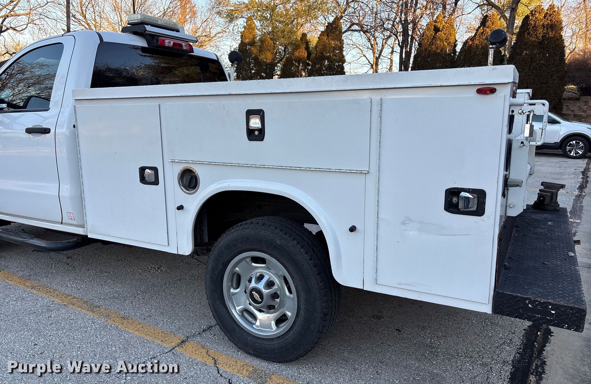This 2015 Chevrolet Silverado utility bed pickup truck will sell to the highest bidder regardless of price.