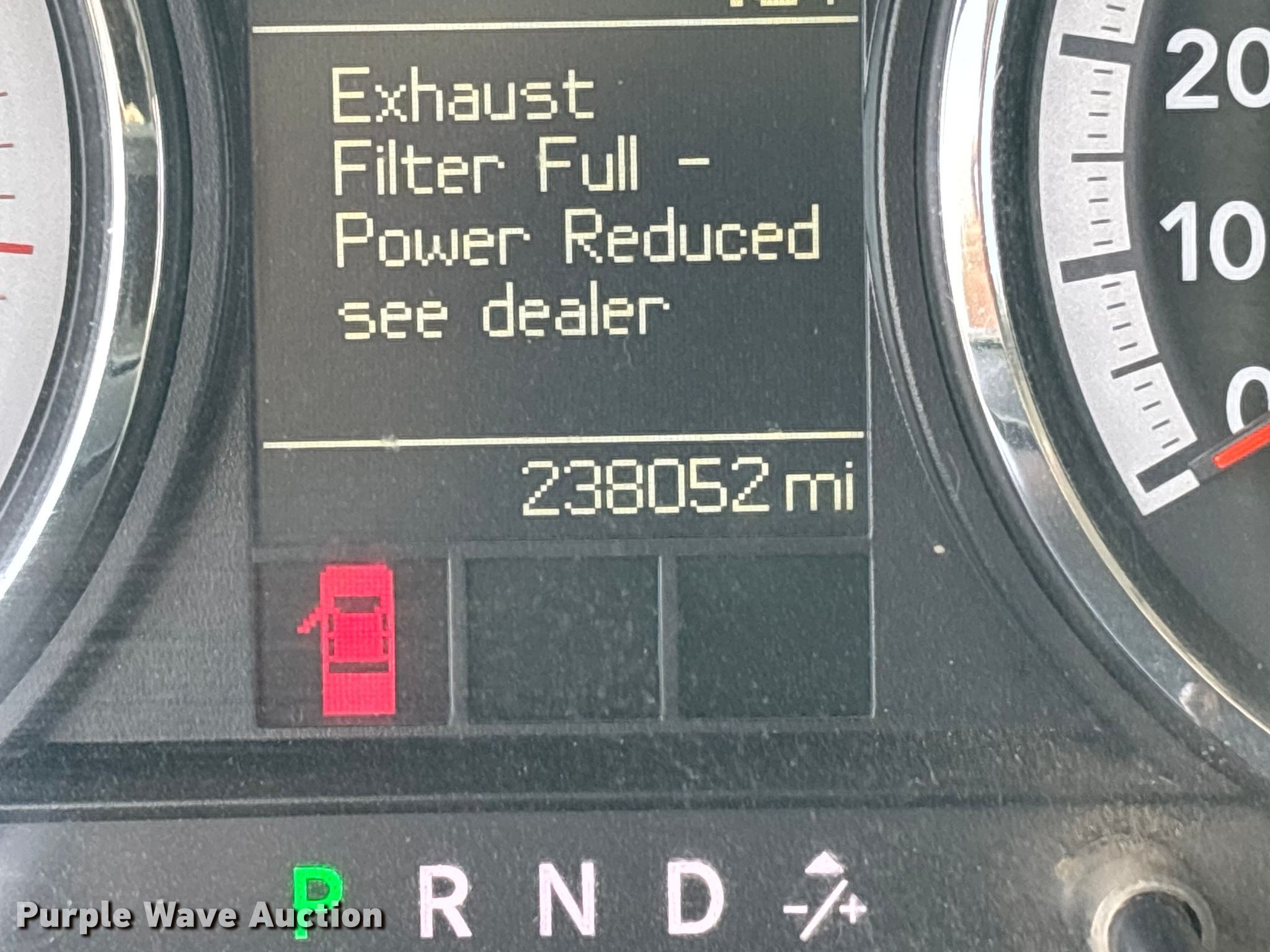 • Dash warning indicator: Diesel exhaust brake, Check engine, Exhaust filter full, Power reduced