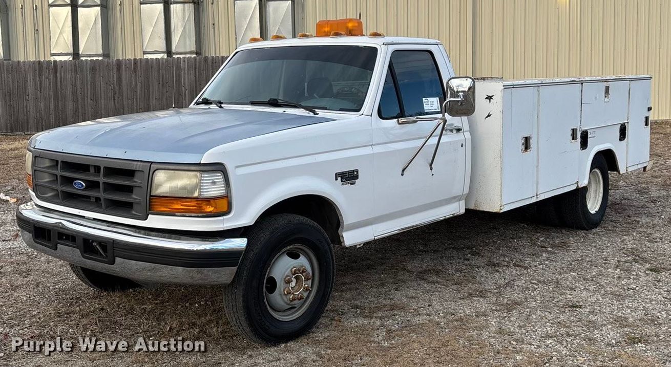Purple Wave is selling a used 3/4 or 1 Ton Pickup or Van in Kansas. This item is a 1995 Ford F350 utility bed pickup truck with the following: Miles: 113,431 on odometer, VIN: 1FDKF37F8SEA56871, Unit #: 300